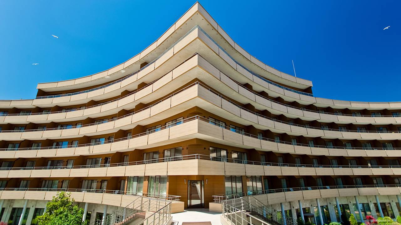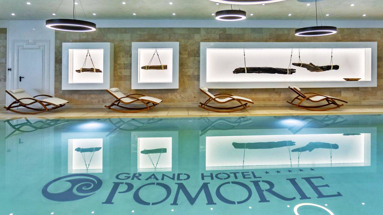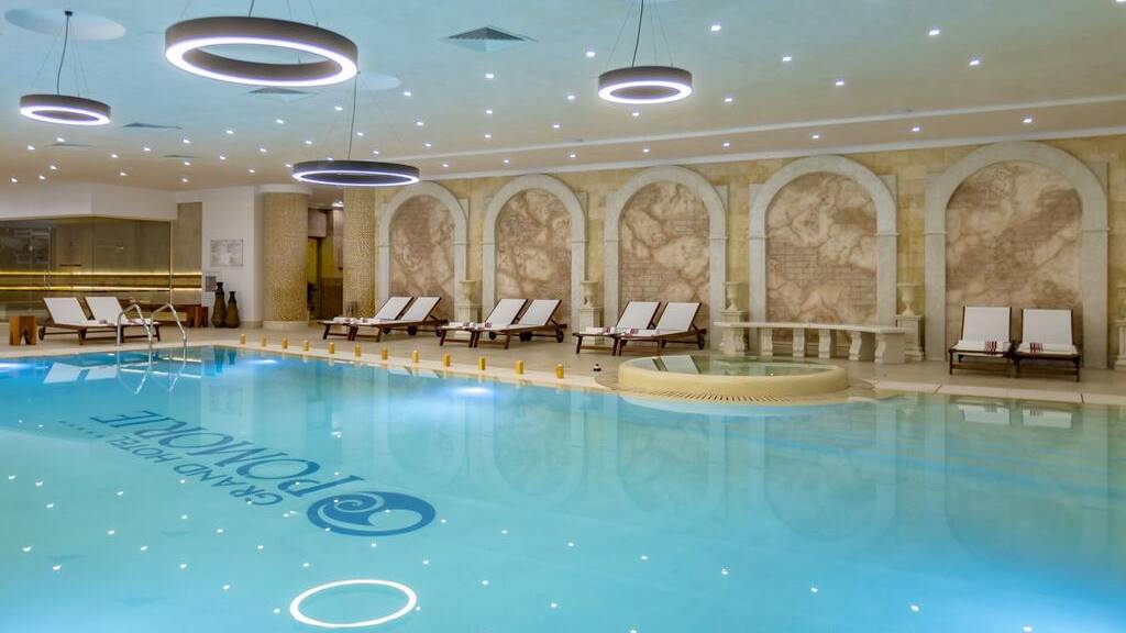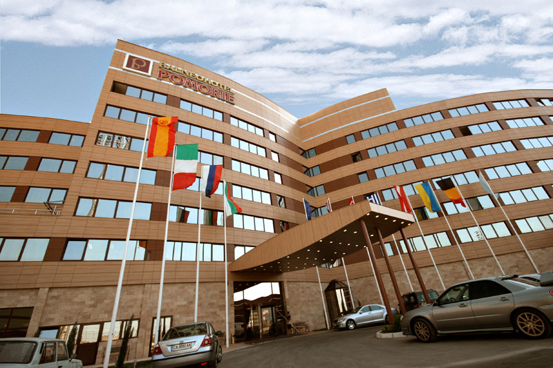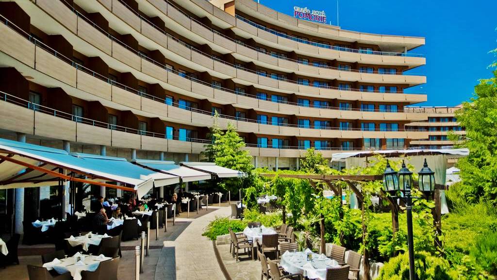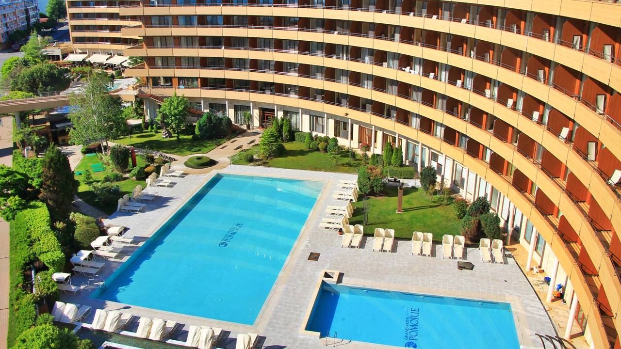 Гранд хотел Поморие, Поморие, е 5-звезден хотел, който се намира в североизточната част на гр. Поморие и само на около 15 минути от летище Бургас и известния черноморски курортен комплекс - Слънчев бряг. Хотелът е разположен между Соленото Поморийски езери и Черно море, което допринася за една невероятна панорама.