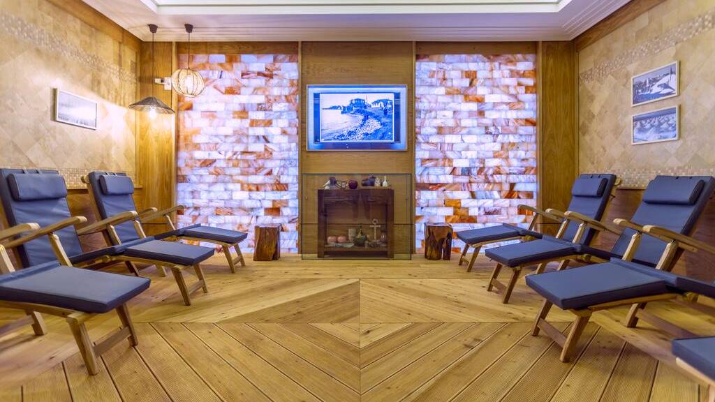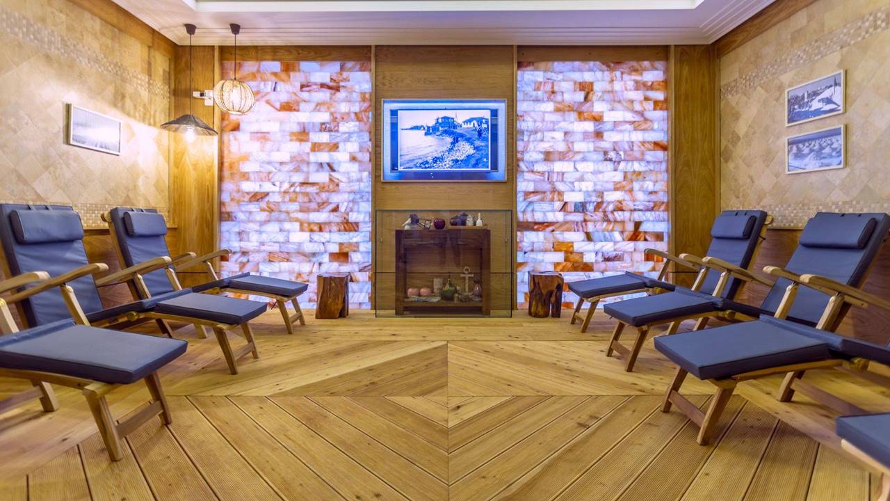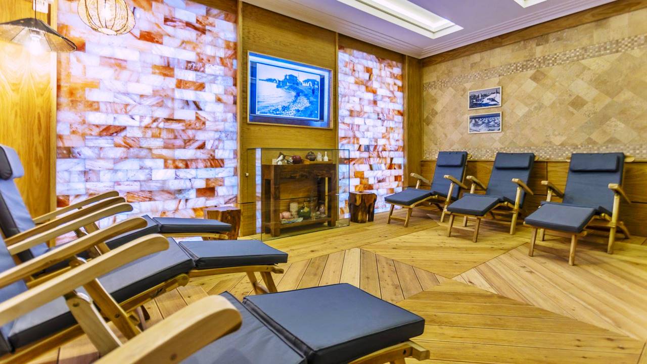 В Гранд хотел Поморие има и уникален за България солен плувен басейн с вода от извор Поморие. Водата извира от 70 метра под земята и е в пъти по-солена от морската вода. Известна е с противовъзпалителния и болкоуспокояващ ефект, както и с това, че подобрява обмяната на веществата в целия организъм. Подходяща е за лечение на болки в коленете, тазобедрените стави, кръста, гръбначния стълб.
