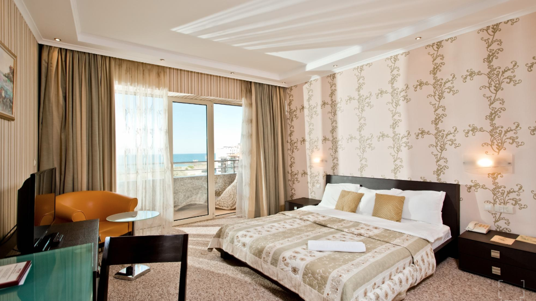 - двойна стая - стаята е около 18 кв. м. и разполага със спалня или 2 отделни легла, допълнително легло - тип походно, гледка море, телевизия, интернет, минибар (срещу заплащане), баня с вана и душ кабина, сешоар