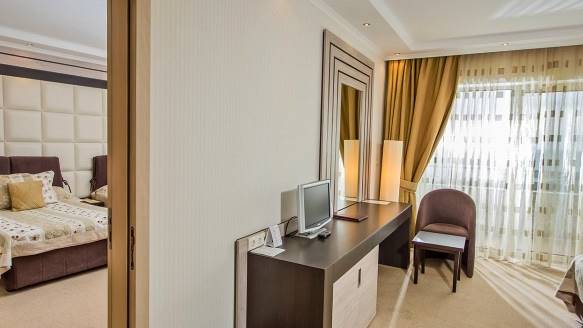 - фамилна стая - Стаята е около 36 кв. м. и разполага с 2 преходни стаи, свързани с междинна врата. Фамилната стая разполага с изглед към морето, телевизия, интернет, сейф, минибар (срещу доплащане), баня с душ кабина и вана, сешоар