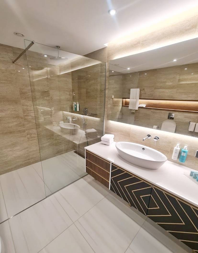 - Двуспален апартамент с балкон - Две отделни помещения, едното спалня, другото огромен хол със спалня и разтегателен диван. Площ около 120 кв.м. и разполага с кръгла маса за хранене, две просторни бани с големи душ кабини, биде, голям балкон с премиум външни мебели, специално сезонно зареждане и бутилка вино, премиум хотелска козметика от водещия италиански бранд “Acqua dell’Elba”, минибар, кафе машина Nespresso, термокана, сейф, 55” телевизор с интерактивна хотелска телевизионна система, климатизация с индивидуално контролиране на температурата, сушилник за балкон