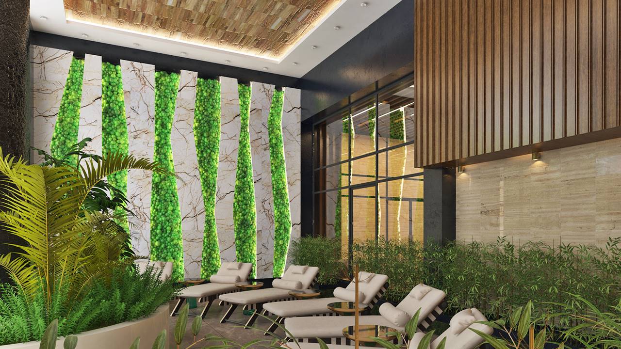 - две зони за релакс, вдъхновени от огъня и водата