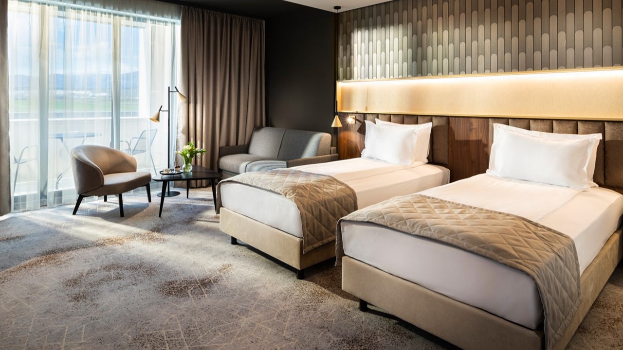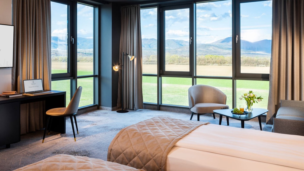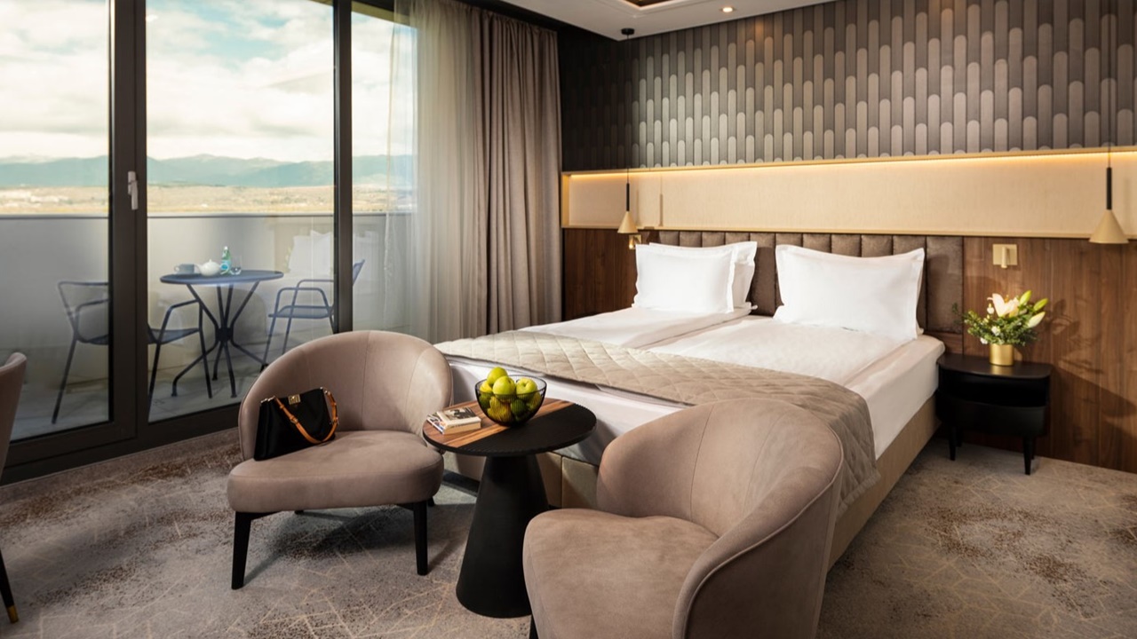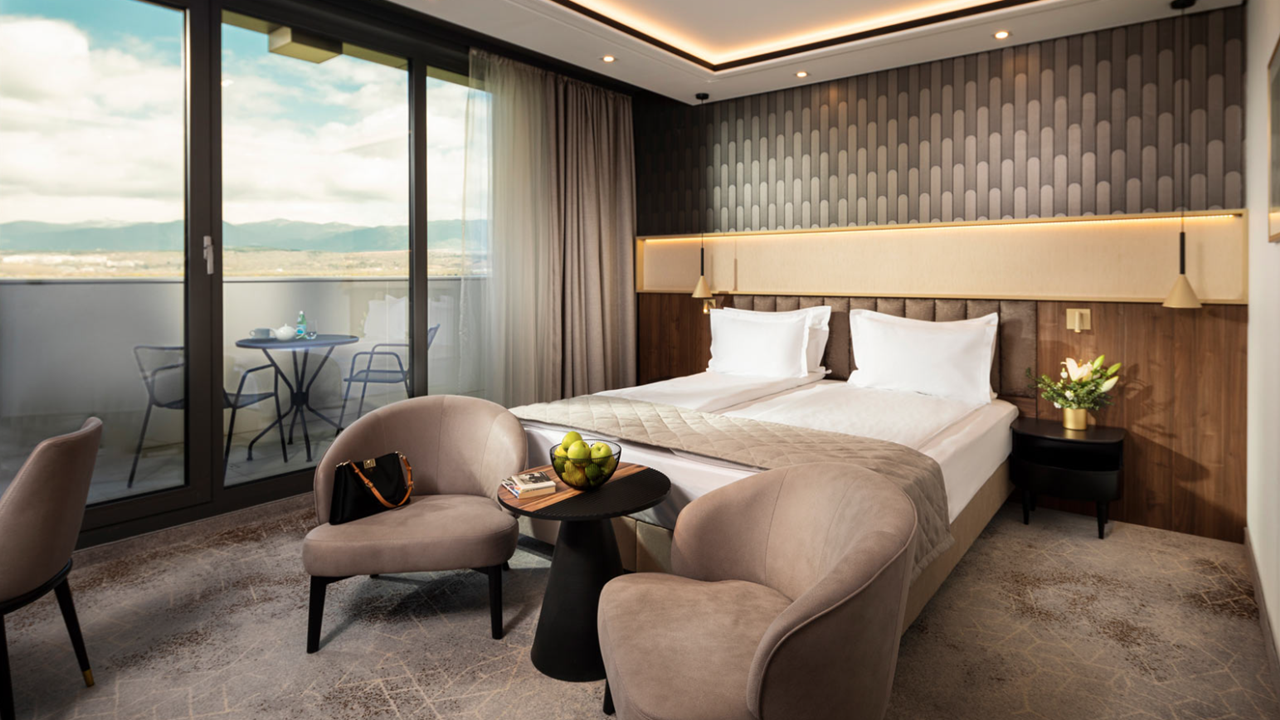 - Сюпириър стая с балкон - Стаята е с площ около 45 кв.м. и разполага със спалня или две отделни легла, разтегателен диван 140 х 200 см, просторна баня с голяма душ кабина, биде, балкон, професионален сешоар, премиум хотелска козметика от водещия италиански бранд “Acqua dell’Elba”, минибар, кафе машина Nespresso, термокана, сейф, 55” телевизор с интерактивна хотелска телевизионна система, климатизация с индивидуално контролиране на температурата, сушилник за балкон