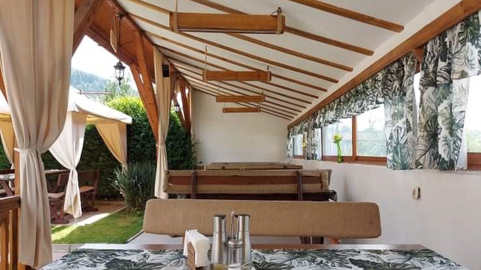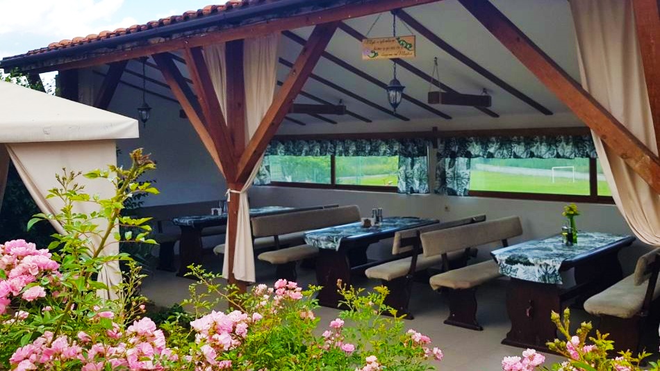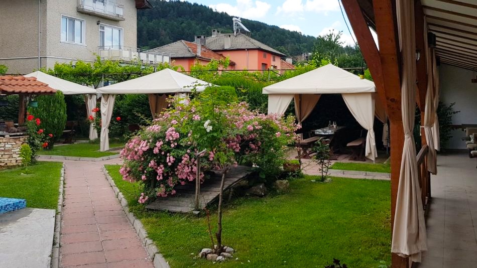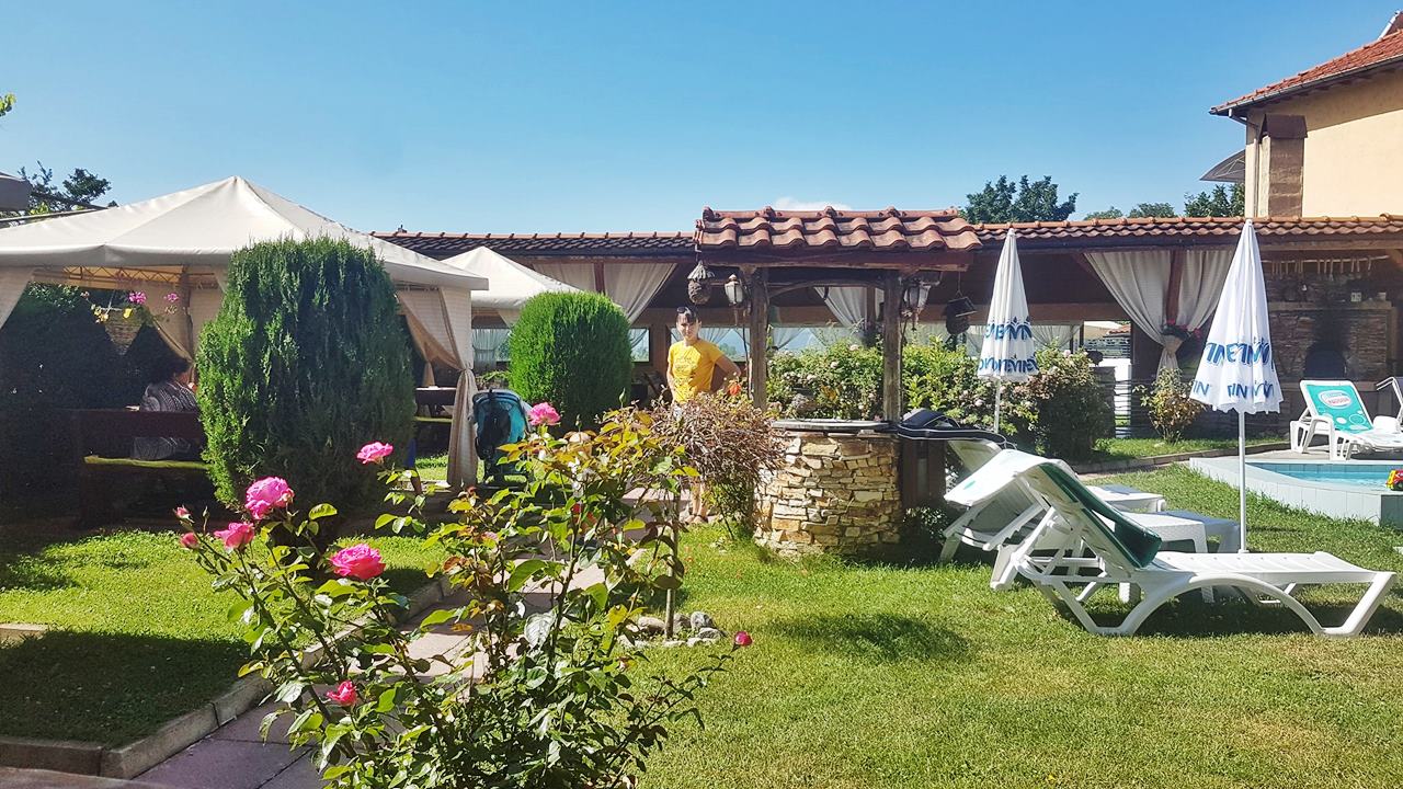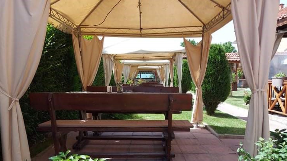 На барбекюто с предварителна заявка във ваше присъствие се приготвя печено агне, печено пиле, печено прасенце. Външната градина е една малка приказка - с минерален басейн и шезлонги, джакузи, прекрасно оформени алеи, зеленина и шатри, под които на сянка спокойно може да се хапва и пийва. И всичко това се ползва само от гостите на хотела, който работи целогодишно.