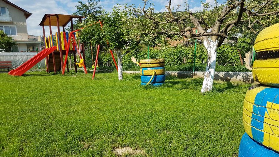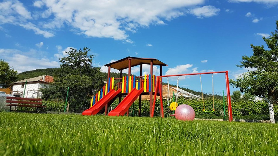 - Детска площадка с тревна площ (подходяща за градински партита и игри на открито)
