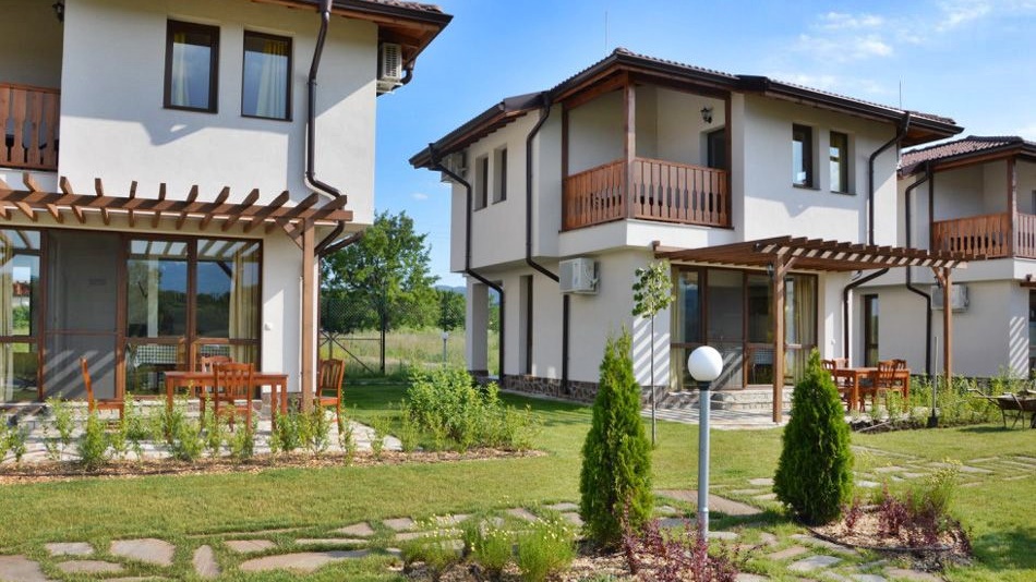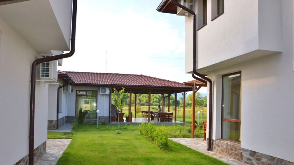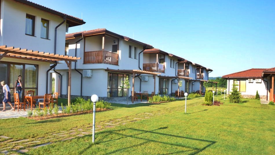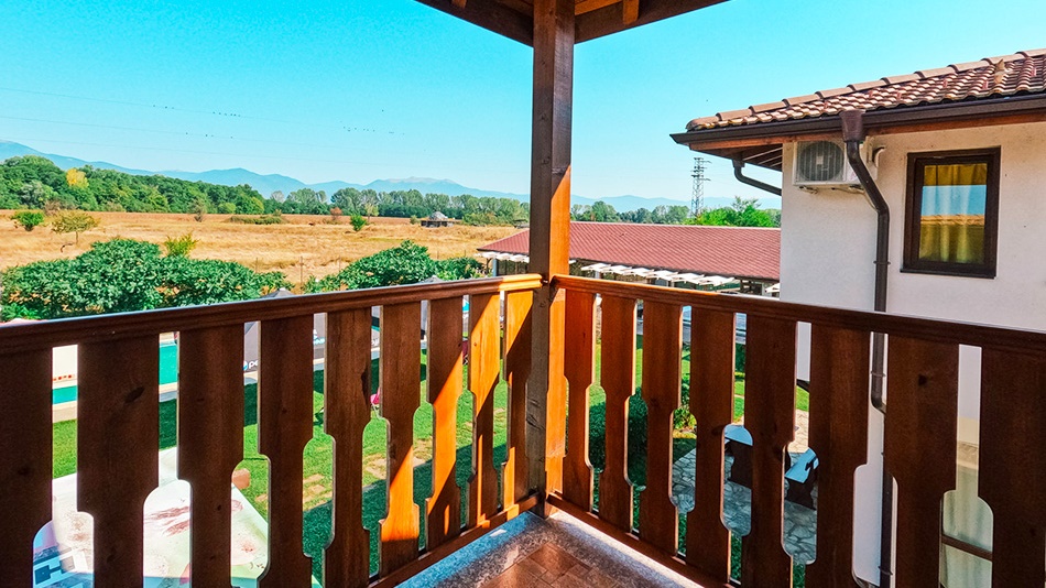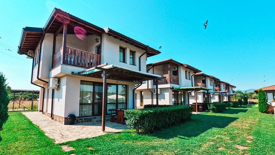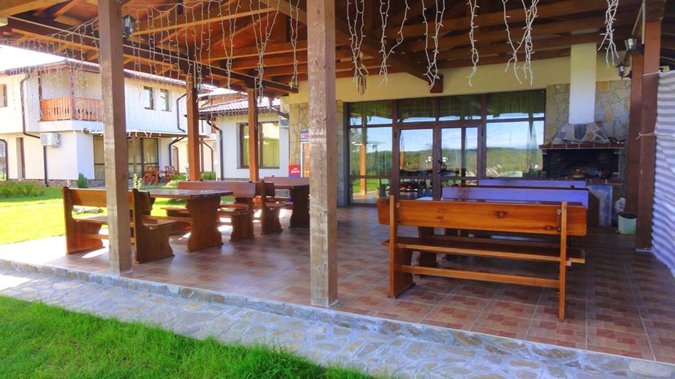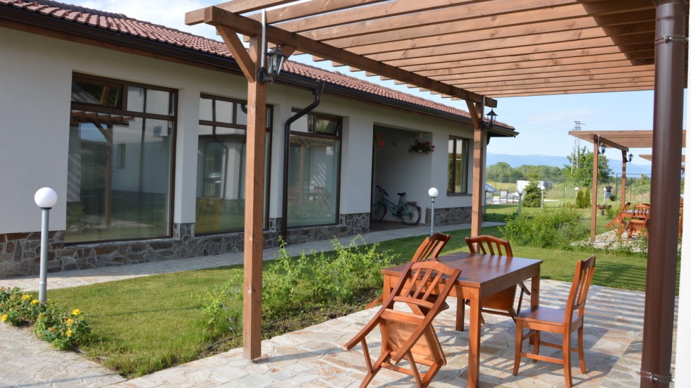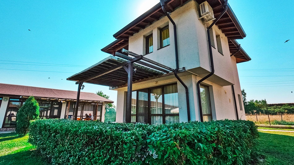 - Комплексът разполага с 5 къщички с капацитет за настаняване на до 6 човека, ако се използва дивана в дневната (на първия етаж). Всяка една къща е на два етажа, а разпределението на къщите е еднакво. На първия етаж има напълно обзаведен кухненски бокс, включващ мивка, микровълнова печка, котлони с абсорбатор, кана за топла вода, хладилник, както и необходимата посуда за приготвяне и сервиране на храна и напитки. Тук са трапезарията и дневната, обзаведени с маса за хранене на 6 души, диван и фотьойл, телевизор, както и баня с тоалетна. На втория етаж са разположени 2 спални помещения и баня с тоалетна. Едната стая е с две самостоятелни легла, а другата е със спалня. В тях има необходимите гардероби, бюра и нощни шкафчета. Всяка къща разполага с по 2 тераси на втория етаж с изглед към Стара планина и Средна гора, както и самостоятелна лятна веранда с изглед към Стара планина и вътрешния двор.