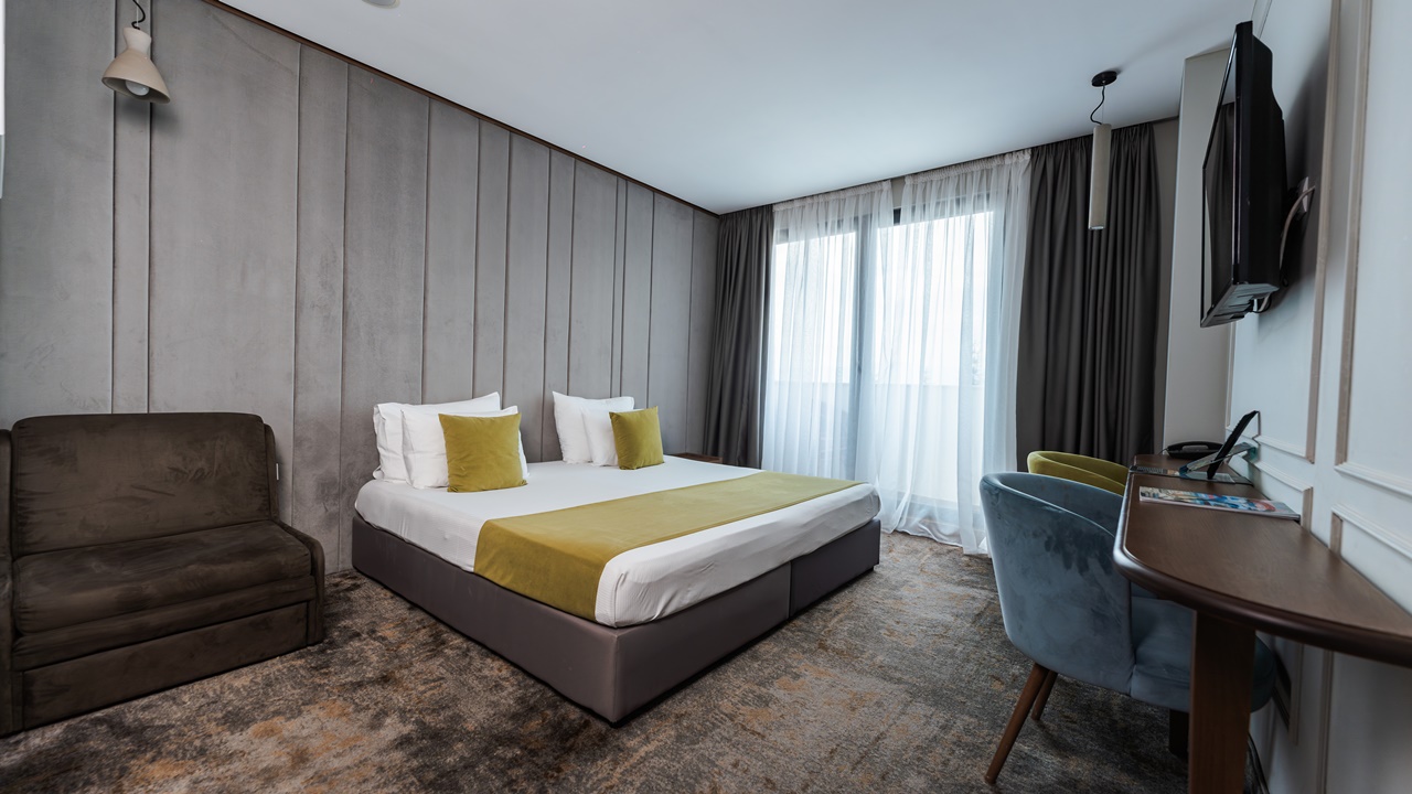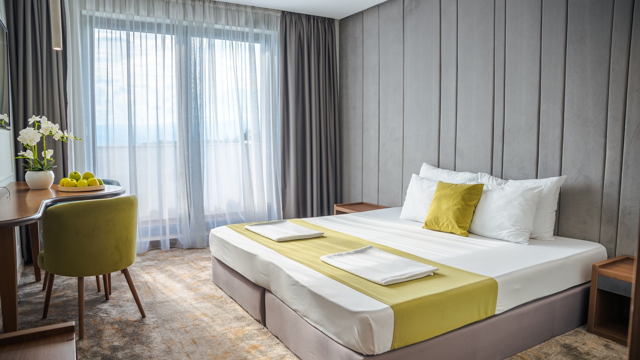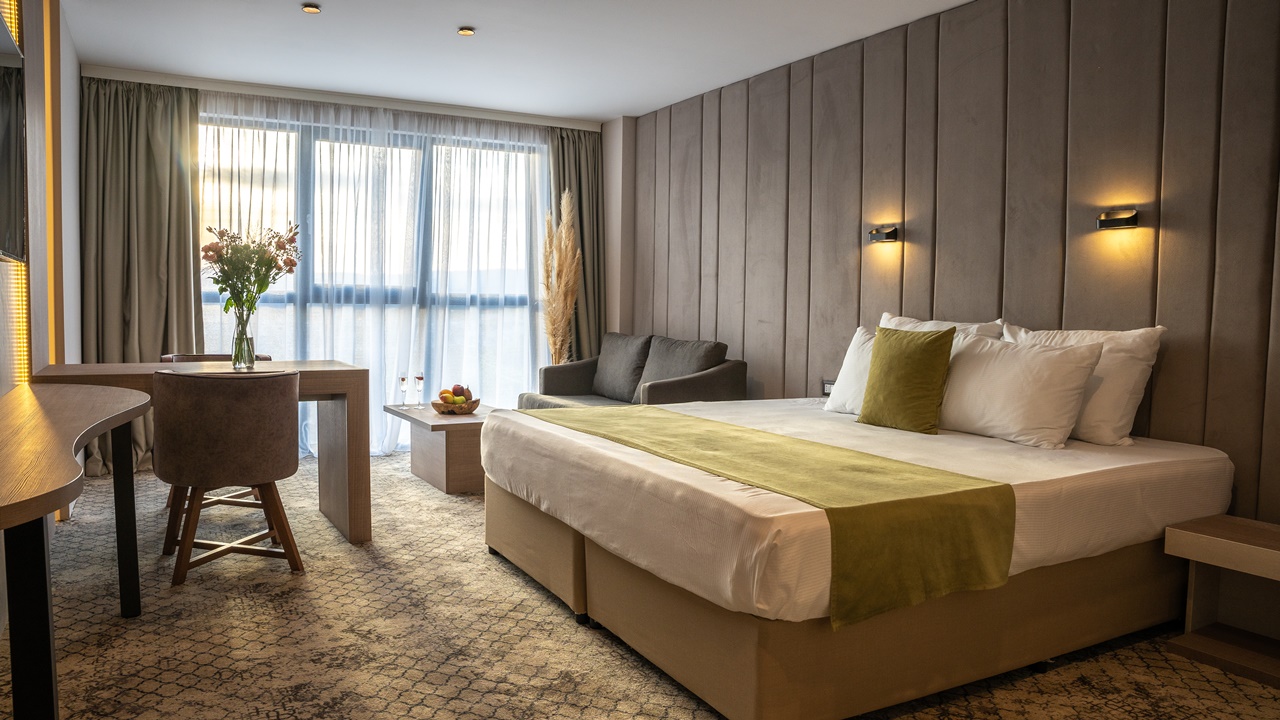 • Премиум стаята е с площ 35 кв. м. и разполага с двойно легло, разтегателен фотьойл/диван, климатик, отварящи се прозорци, кът за отдих,LED телевизор, мини бар, термокана, кафе и чай комплиментсейф, телефон, безжичен интернет, сешоар, баня с душ и/или вана, халати, хотелска козметика. Част от стаите имат и тераси.