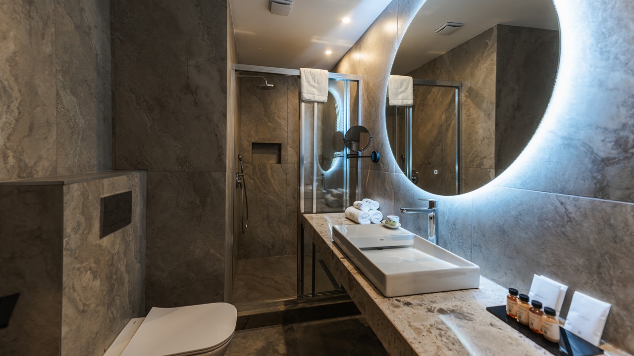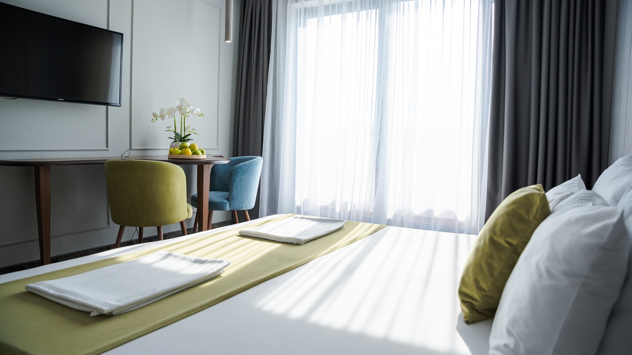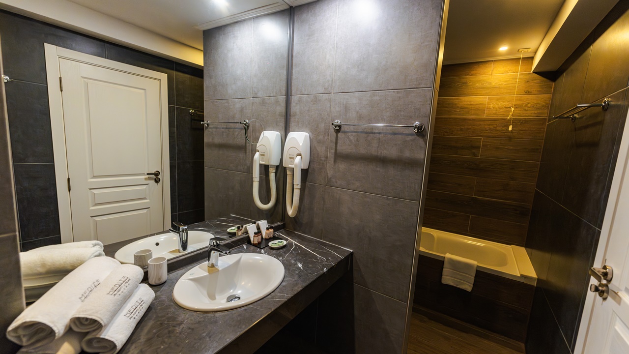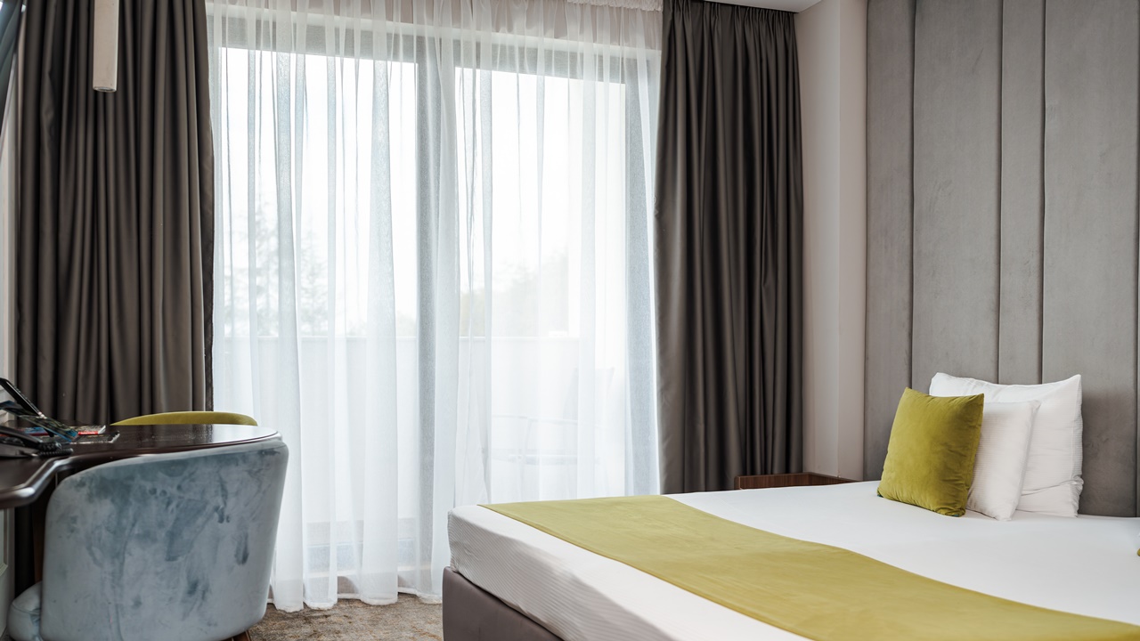 • Премиум стаята е с площ 35 кв. м. и разполага с двойно легло, разтегателен фотьойл/диван, климатик, отварящи се прозорци, кът за отдих,LED телевизор, мини бар, термокана, кафе и чай комплиментсейф, телефон, безжичен интернет, сешоар, баня с душ и/или вана, халати, хотелска козметика. Част от стаите имат и тераси.
