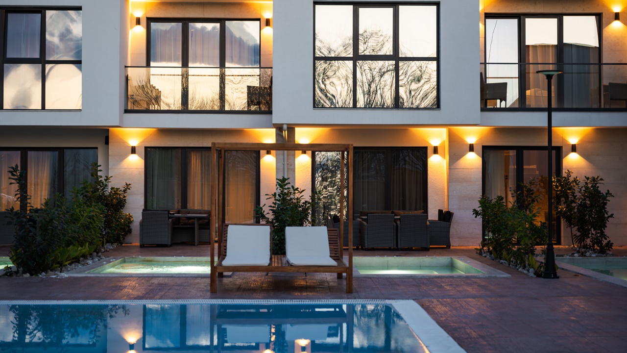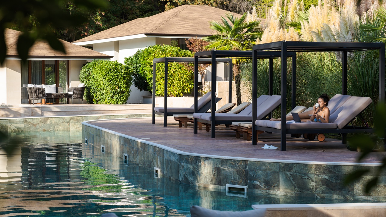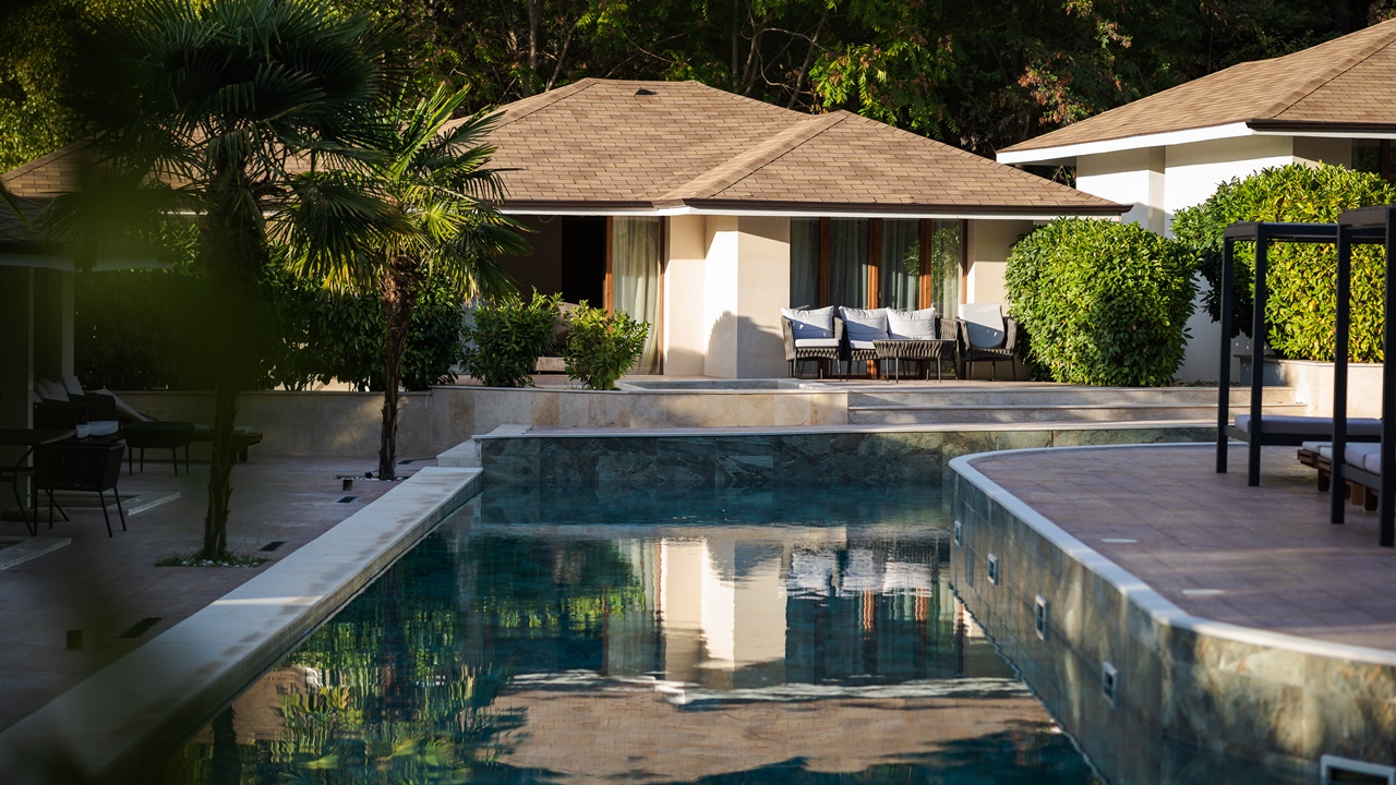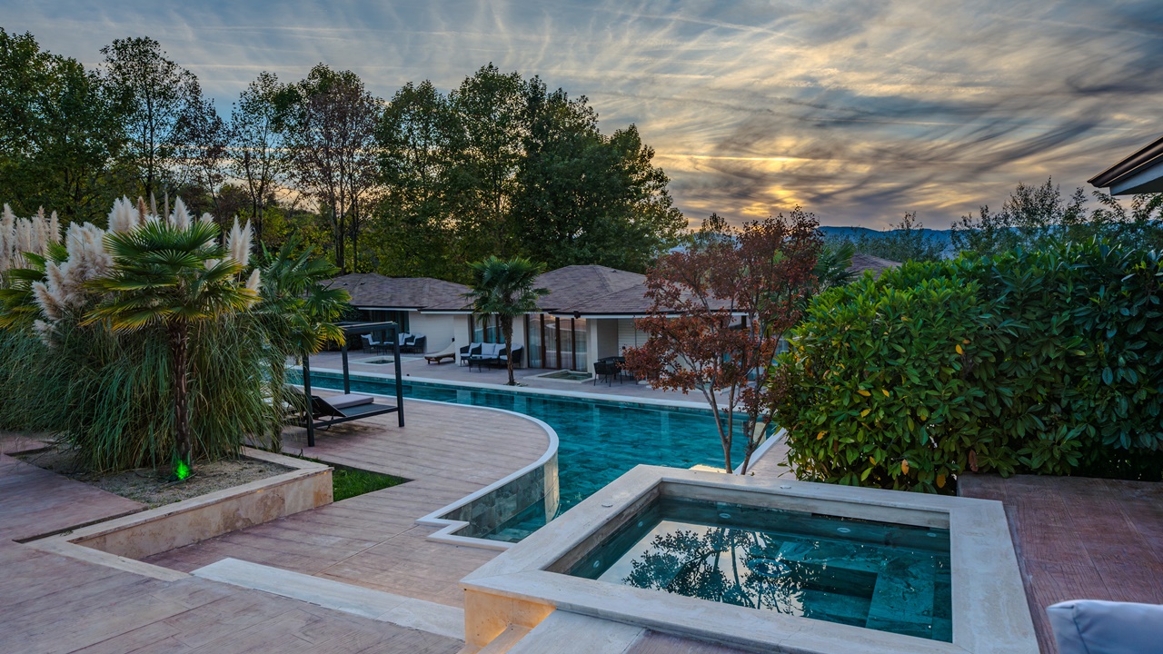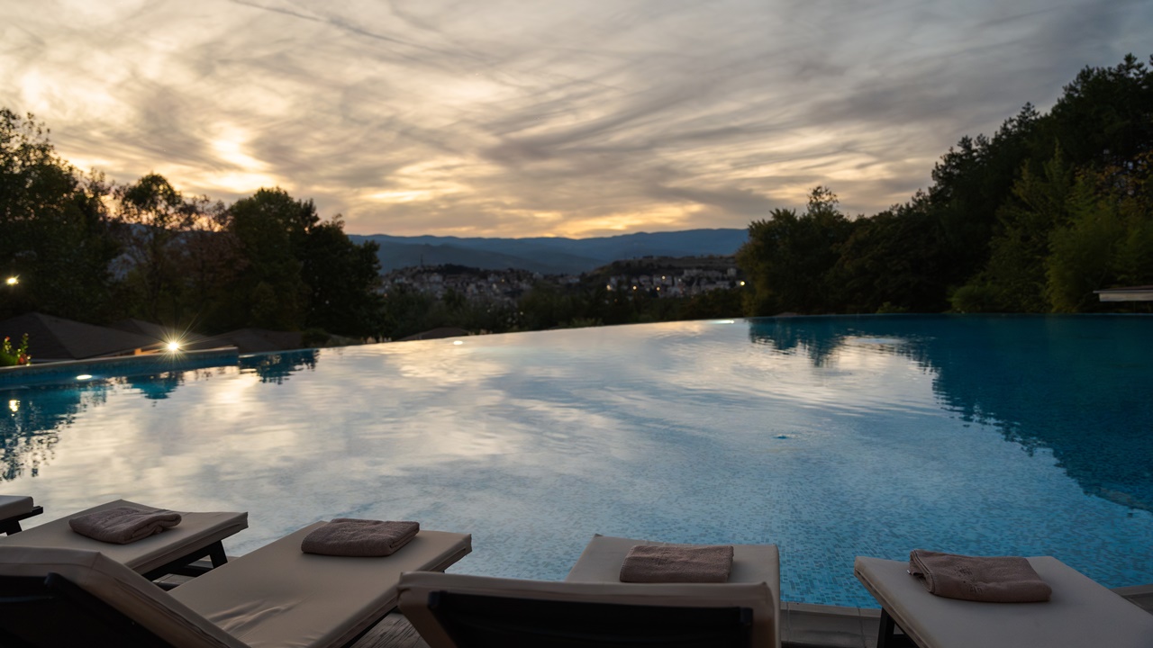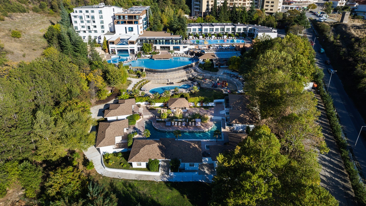 • Вилите са ситуирани около общ минерален басейн и разполагат с индивидуално външно джакузи с минерална вода, което е на разположение единствено за гостите на съответната Вила