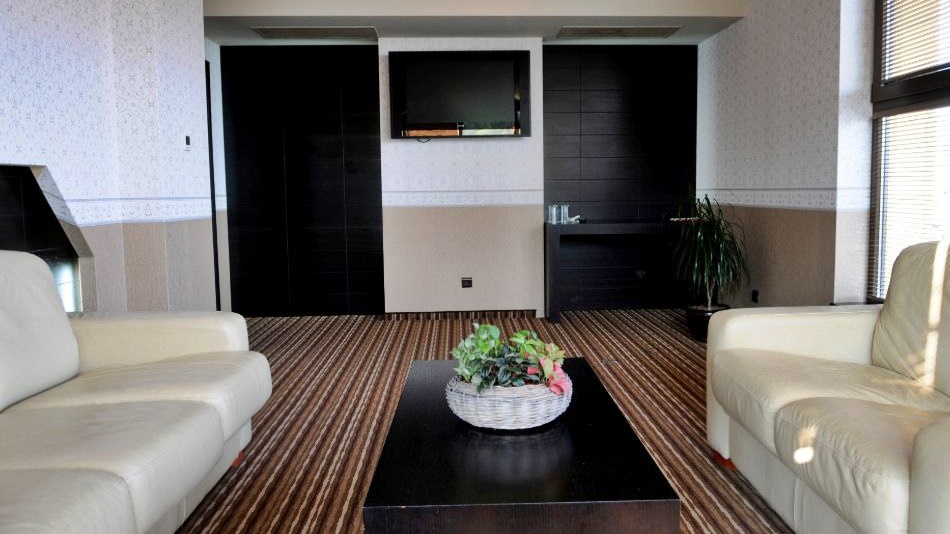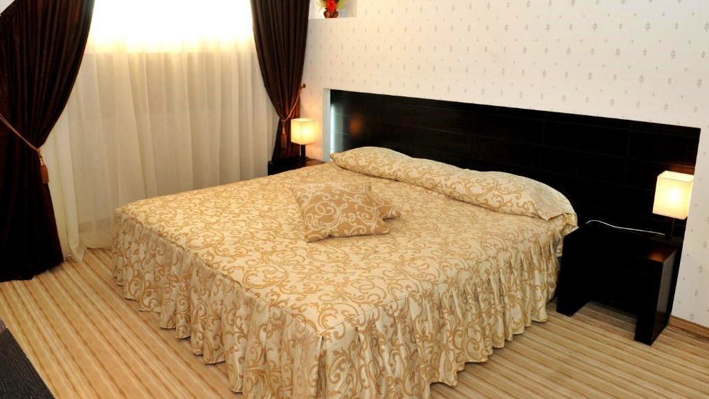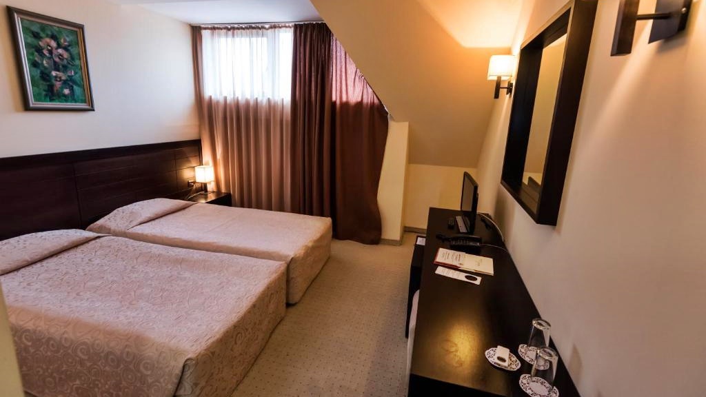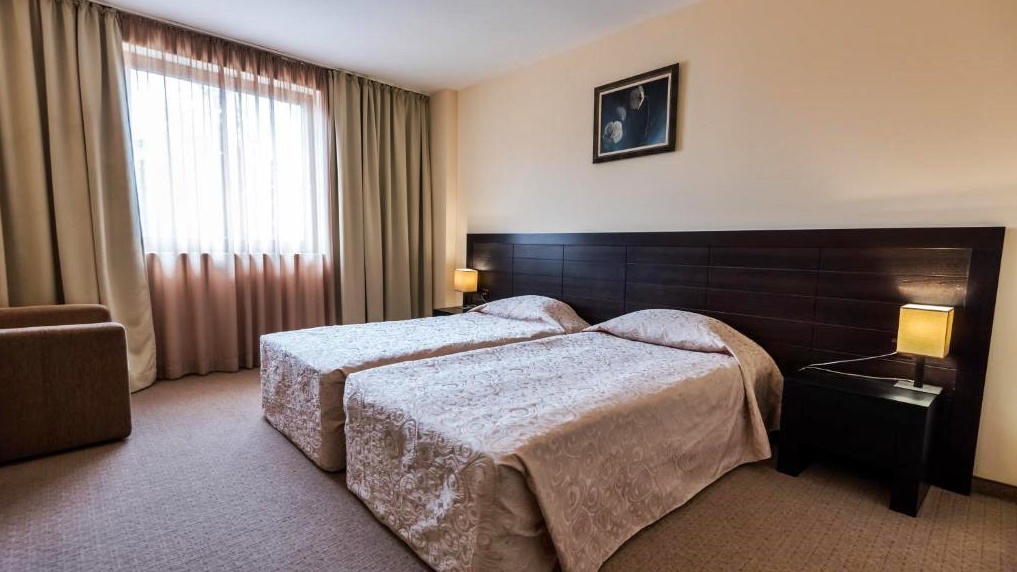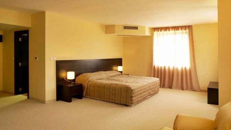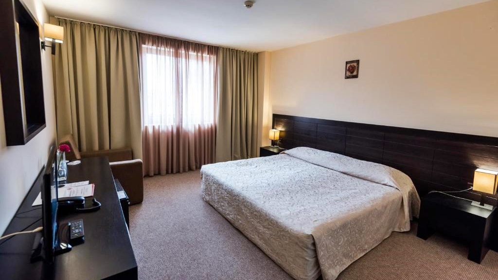 • Двойна стая Лукс - Луксозните стаи са с площ около 35 кв.м. и разполагат с LCD телевизор 51 см , телефон, легла: две единични легла (90 х 200 см.) с нощни шкафчета или спалня (200 х 200 см.) с нощни шкафчета, разтегателен фотьойл, сейф, мини бар, фотьойл (който се разгъва при необходимост), гардероб за лични вещи, работна зона с писмени принадлежности, огледало, вана, душ, огледало, телефон, panic-button, халат, комплект кърпи, чехли, богат избор на козметика за баня