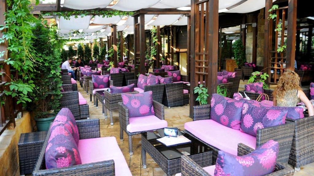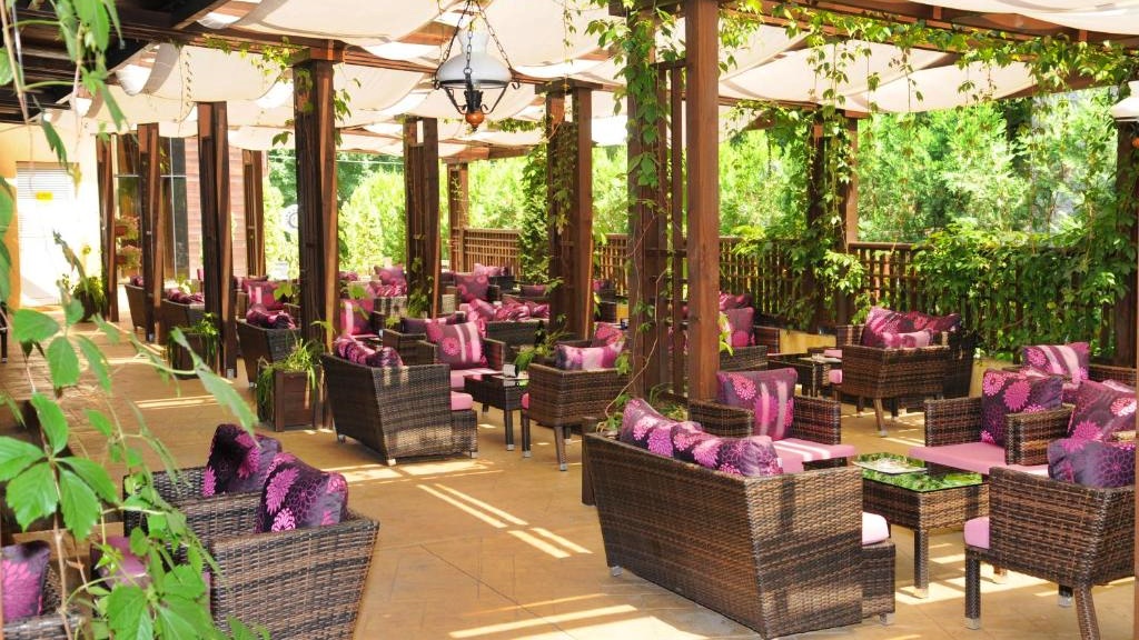 Стилният лоби бар с елегантна камина разполага със 80 места, безжичен интернет и богат асортимент от напитки. Механа „Кукери", изградена от дърво, мед и камък, е най-колоритното място в целия комплекс. Механата е на две нива с капацитет 400 места и Ви предлага автентична българска кухня, бански специалитети и балканска кухня. Стилът и сценичният дизайн на механата я превръщат в идеалното място за организиране на банкети и незабравими сватбени тържества. Там можете да потанцувате, да се насладите на фолклорната програма и отличното обслужване. Италианският ресторант с лятна тераса предлага на своите гости богата кулинарна палитра. В уютната и приятна атмосфера ще Ви предложат богат асортимент от специалитети.