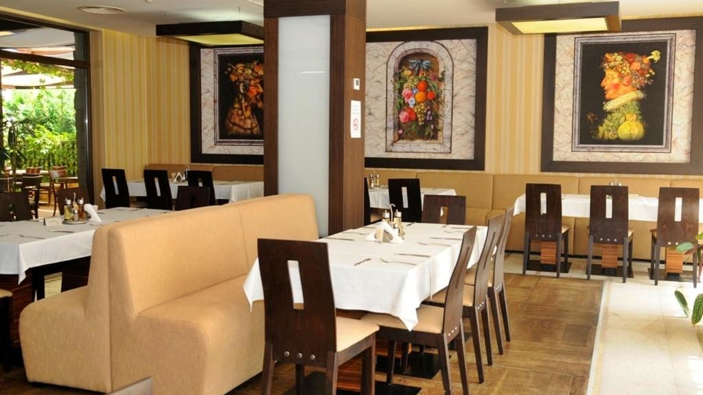 • Изхранването е на блок маса или сет меню (според заетостта на хотела). По време на закуската се предлагат безплатно минерална вода и три вида сок