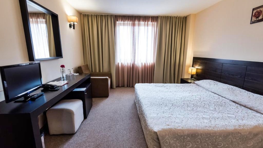 • Двойна стая Стандарт - Стандартните стаи са с площ около 30 кв.м. и разполагат с LCD телевизор 51 см., телефон, легла: две единични легла (90 х 200 см.) с нощни шкафчета или спалня (200 х 200 см.), с нощни шкафчета, сейф, мини бар, гардероб за лични вещи, работна зона с писмени принадлежности, огледало, вана, душ, огледало, телефон, panic-button, халат, комплект кърпи, чехли, богат избор на козметика за баня