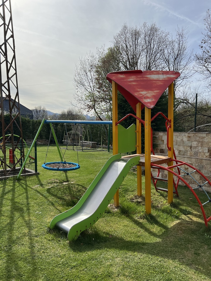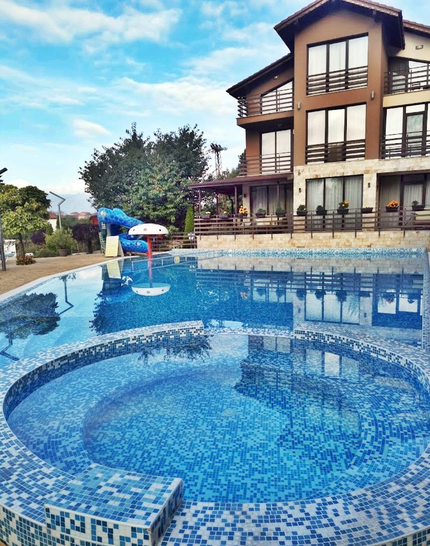 - Детска част във външния басейн с малка модна пързалка и гъба
