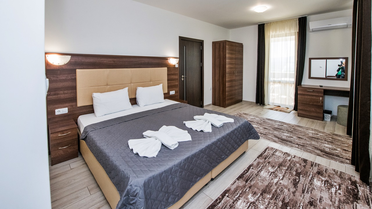 - двойна стая - Двойната стая разполага със спалня или две отделни легла, разтегателен фотьойл, телевизор с кабелна телевизия, климатик, минибар, просторна баня с душ кабина и озвучение и тераса със столове