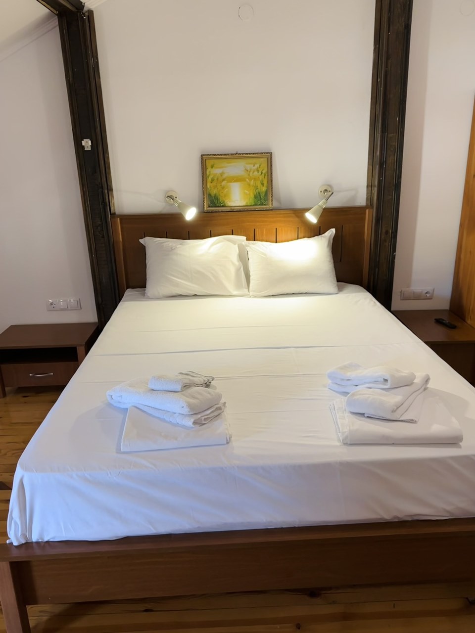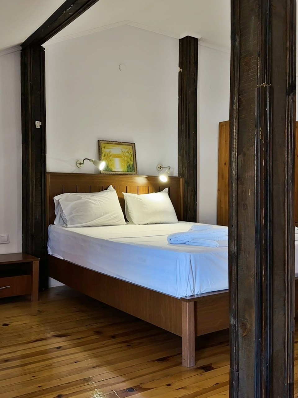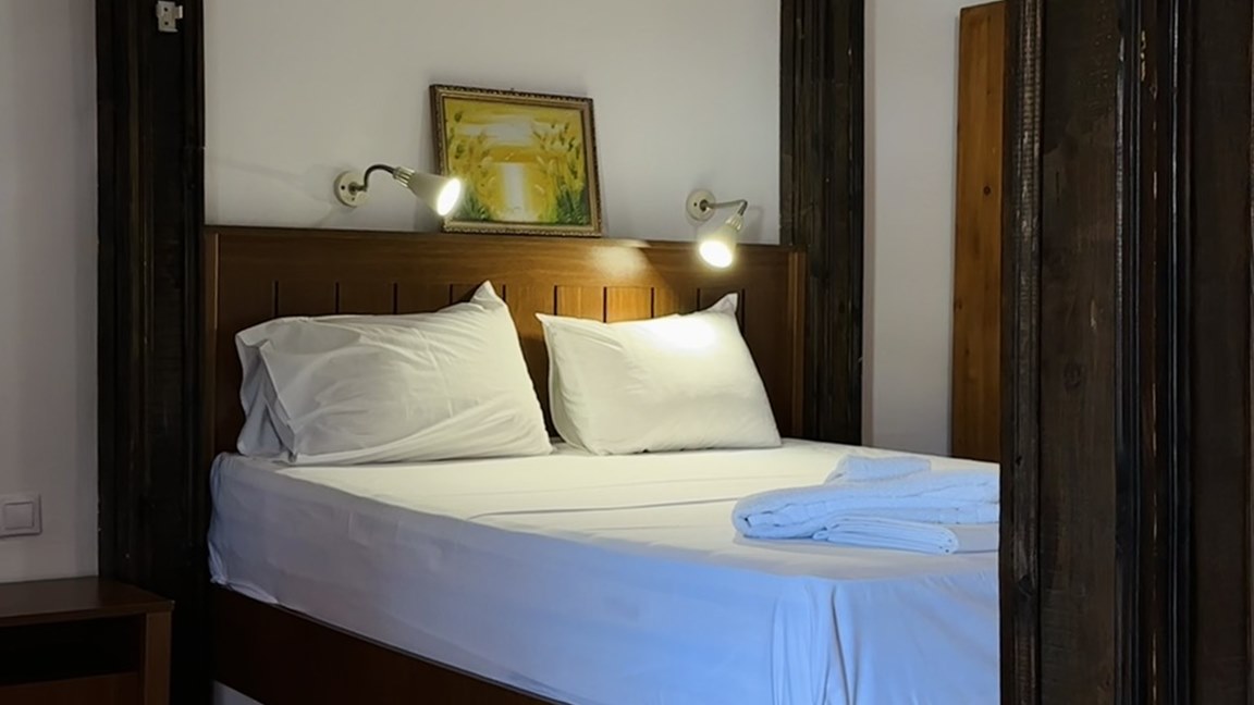 - Двойна стая - Двойните стаи (общо 4 бр.) се състоят от спалня + разтегателен диван персон и половина (140х180 см). Една от двойните стаи няма диван и е възможно настаняване само на 2 възрастни