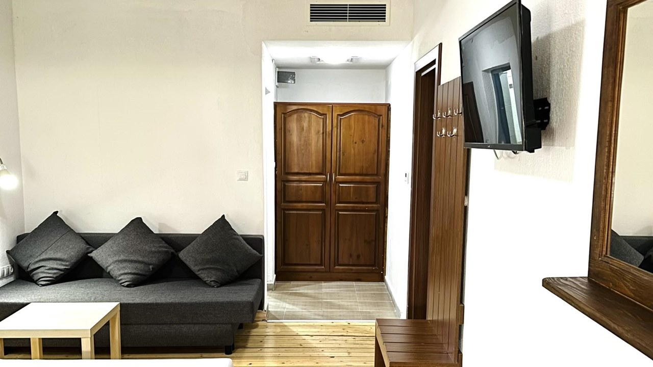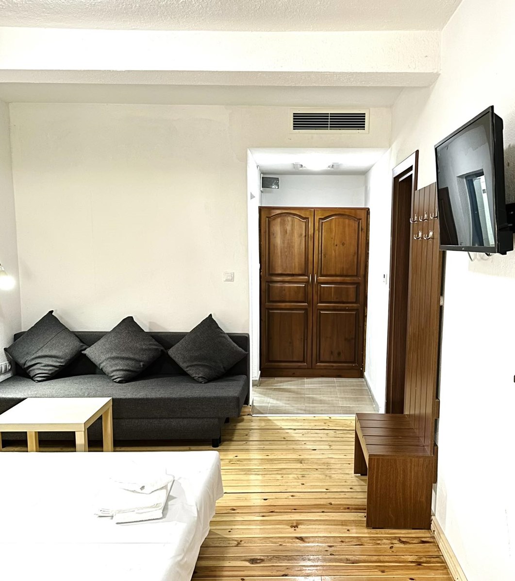 - Апартамент - Апартаментът (1 бр.) е реално 2 двойни стаи с междинна врата между тях, със спалня в едната и 2 единични легла в другата стая и 2 бани и тоалетни
