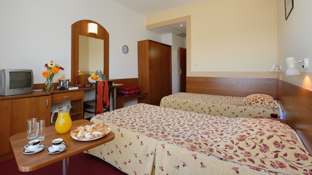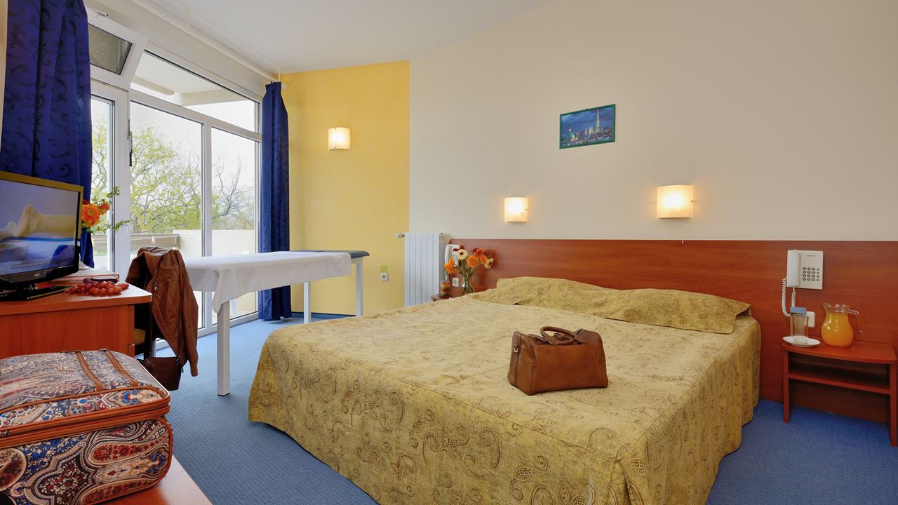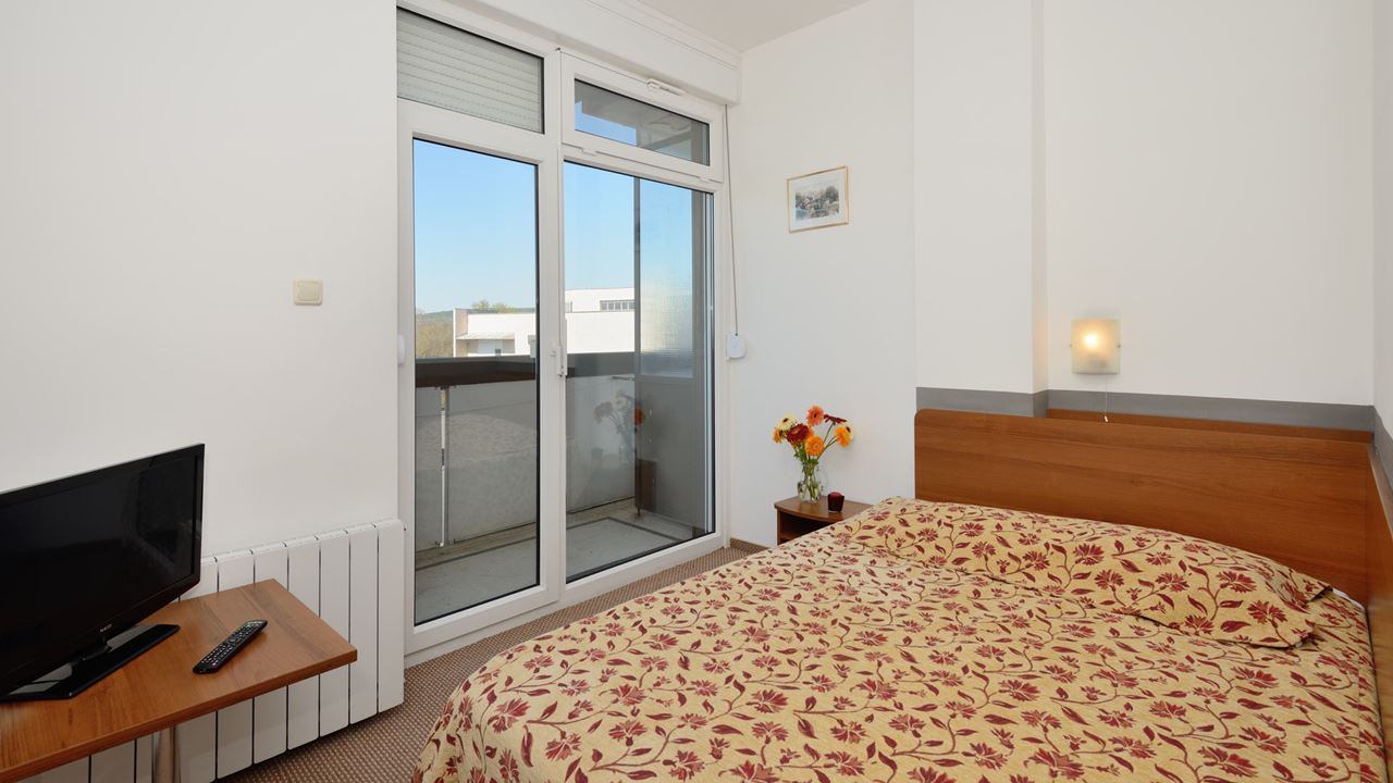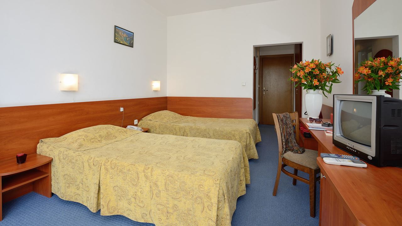 - двойна стандартна стая със спалня или 2 отделни легла - Уютните двойни стаи предлагат спалня с размер 170х200 см или две отделни легла с размер 100х200 см и опция за допълнително легло. Разполагат с тераса, TV, телефон, климатик, хладилник, функционално обзавеждане, PVC-дограма с външни ролетни щори, баня с вана или душ, телефон, сешоар, локално отопление