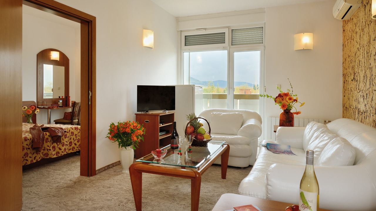 - стандартен едноспален апартамент - Състоят се от отделни спалня и хол. Стаите са светли и просторни, стилно обзаведени. Разполагат с две тераси, два TV, телефон, климатик, функционално обзавеждане, PVC-дограма с външни ролетни щори спалня, хол с разтегаем диван, баня с джакузи (хидромасажна вана), телефон, сешоар, локално отопление, мини-кухненски бокс с грил и кафе машина.