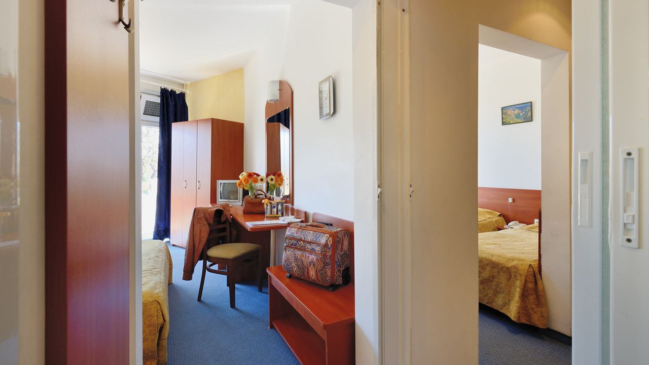 - двойни преходни стандартни стаи - две двойни стаи, свързани с врата. Едната стая е със спалня с размер 170х200 см, а другата е с две отделни легла с размер 100х200 см. Разполагат с всички удобства на двойните стаи.