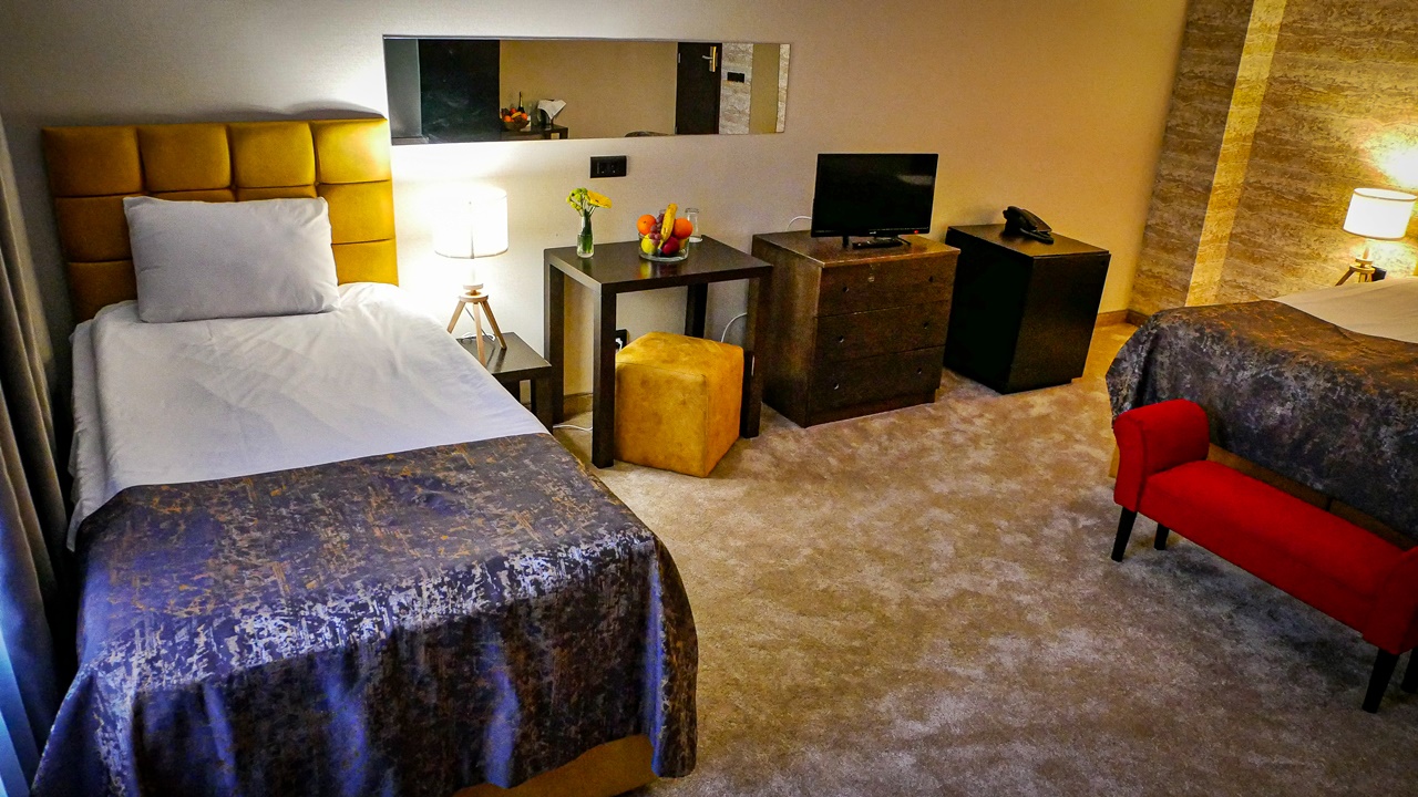 - Двойна стая Silver / Gold - двойните стаи се състоят от едно двойно или две единични леглa, опция за допълнително легло и трето редовно легло (в стаите Gold), завеси за пълно затъмнение, телевизор, кабелна телевизия, телефон, безжичен интернет, малък хладилник, бани с душ или вана с тоалетни принадлежности - сешоар, халат, чехли, част от стаите имат изглед към Пирин планина. Gold стаите са по-луксозно обзаведени и една идея по-големи