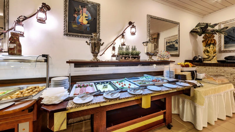 Основния ресторант на хотела е с капацитет на салона 160 места и 40 на терасата към ресторанта, предлага на гостите изтънчено а-ла карт меню от предимно европейска кухня. В лоби бара можете да се отпуснете с питие пред камината или да изпиете сутрешното си кафе.