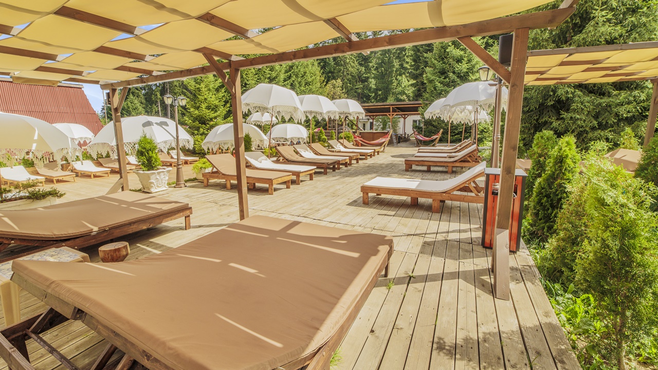 През топлите месеци на годината за гостите на хотела работи малък външен басейн и голяма тераса със шезлонги.