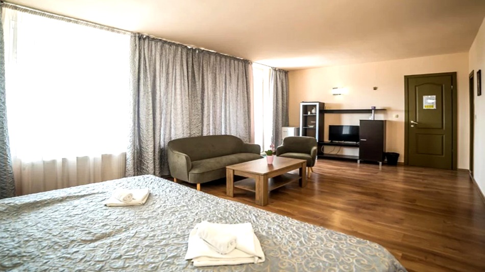 - двойна стая - 2 възрастни + 1 дете. Двойните стаи разполагат със спалня или 2 единични легла + допълнително легло или разтегателен фотьойл