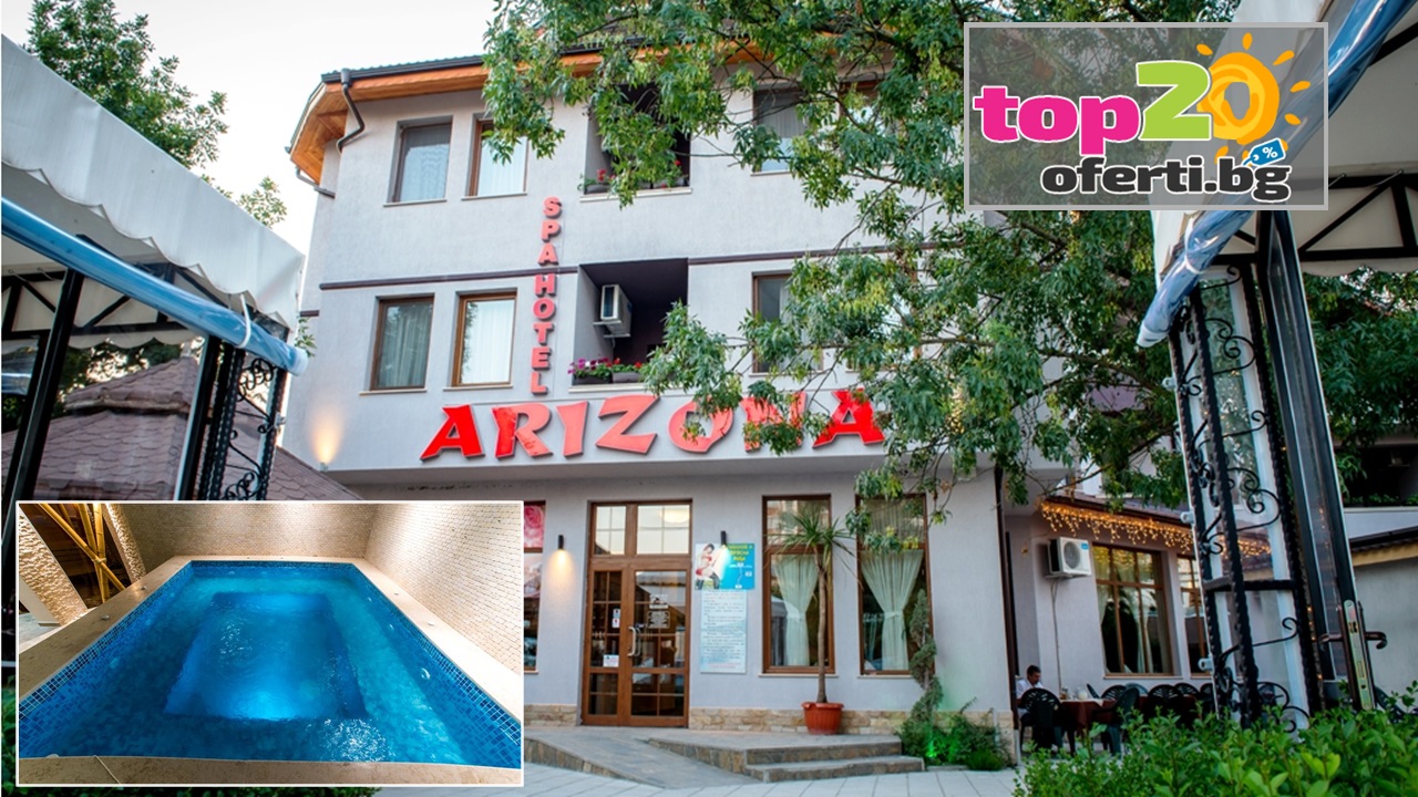 Хотелската част на „Аризона“ реновирана изцяло през 2020 г. и разполага с 18 бутикови стаи: 4 икономични/без балкон/, 8 двойни DELUX стаи със спалня или с отделни легла, 4 студиа DELUX разполагащи със мека мебел която позволява посрещането на семейства с до 2 деца или настаняване на трети възрастен, 2 ВИП студиа /за най-капризните/. Максималният капацитет е 40 легла.