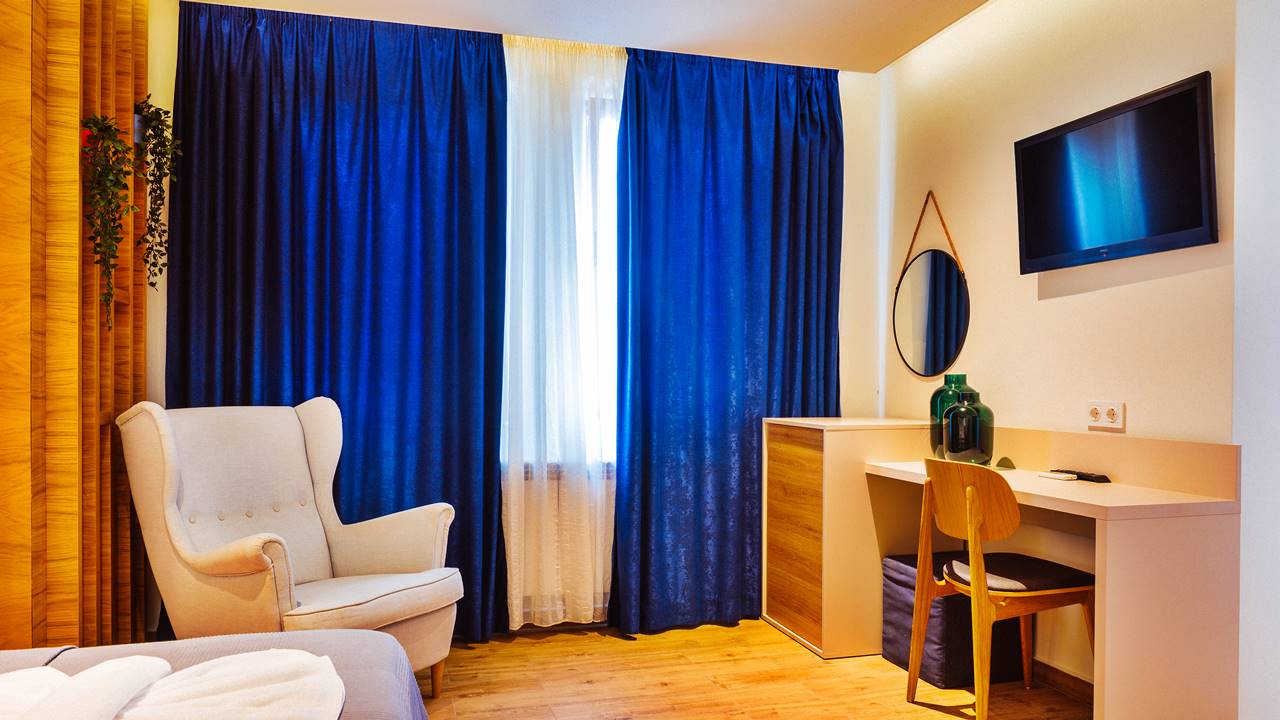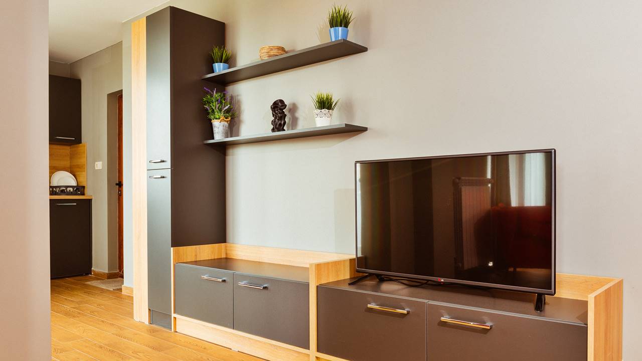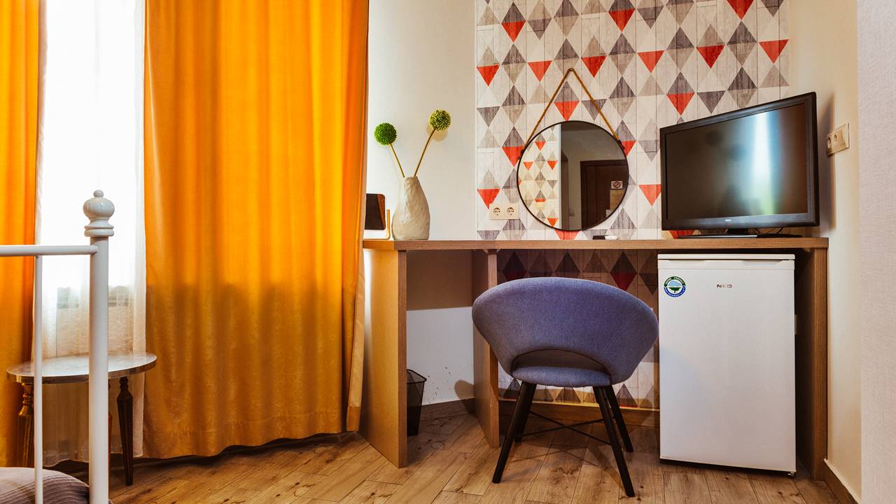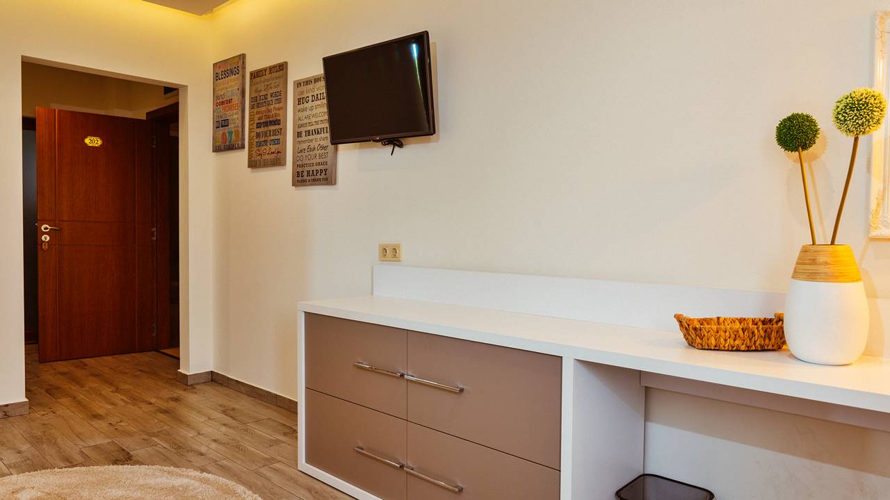 - Във всяко помещение има хавлии и халати. Някои от двойните стаи разполагат с балкон. Всички студиа и ВИП студиа разполагат с балкон. Помещенията разполагат с LED телевизор с кабелна телевизия, климатик, безжичен интернет, хладилник, кресло, кана за гореща вода, всички стаи са с осигурен достъп за инвалидни колички. ВИП студиата разполагат с кухненски бокс.