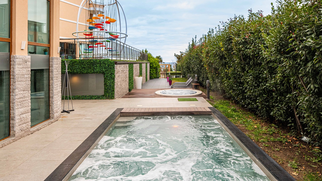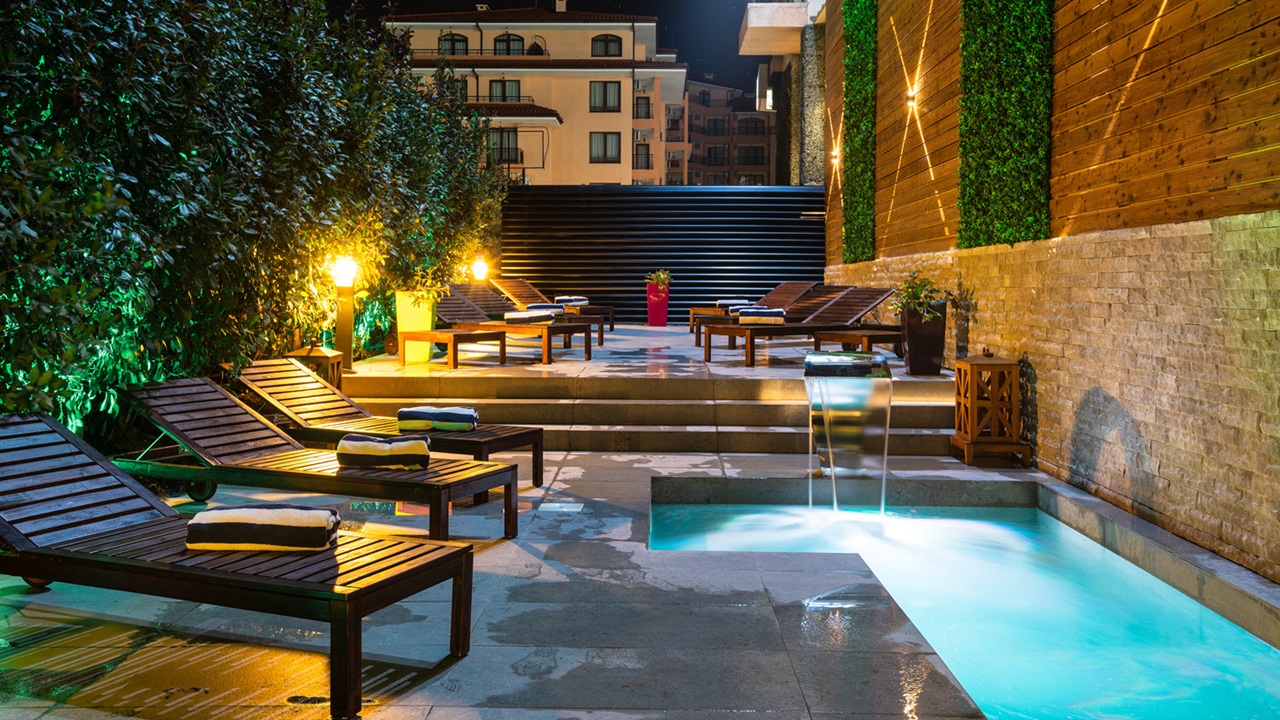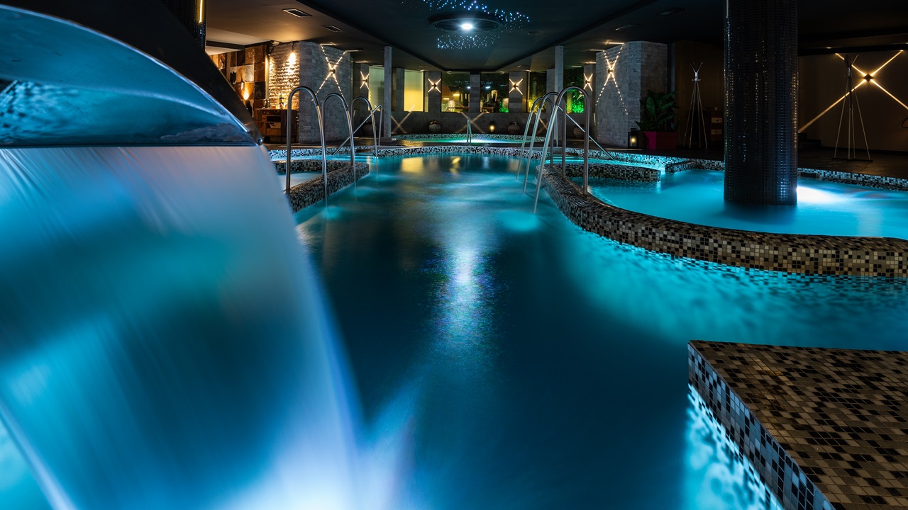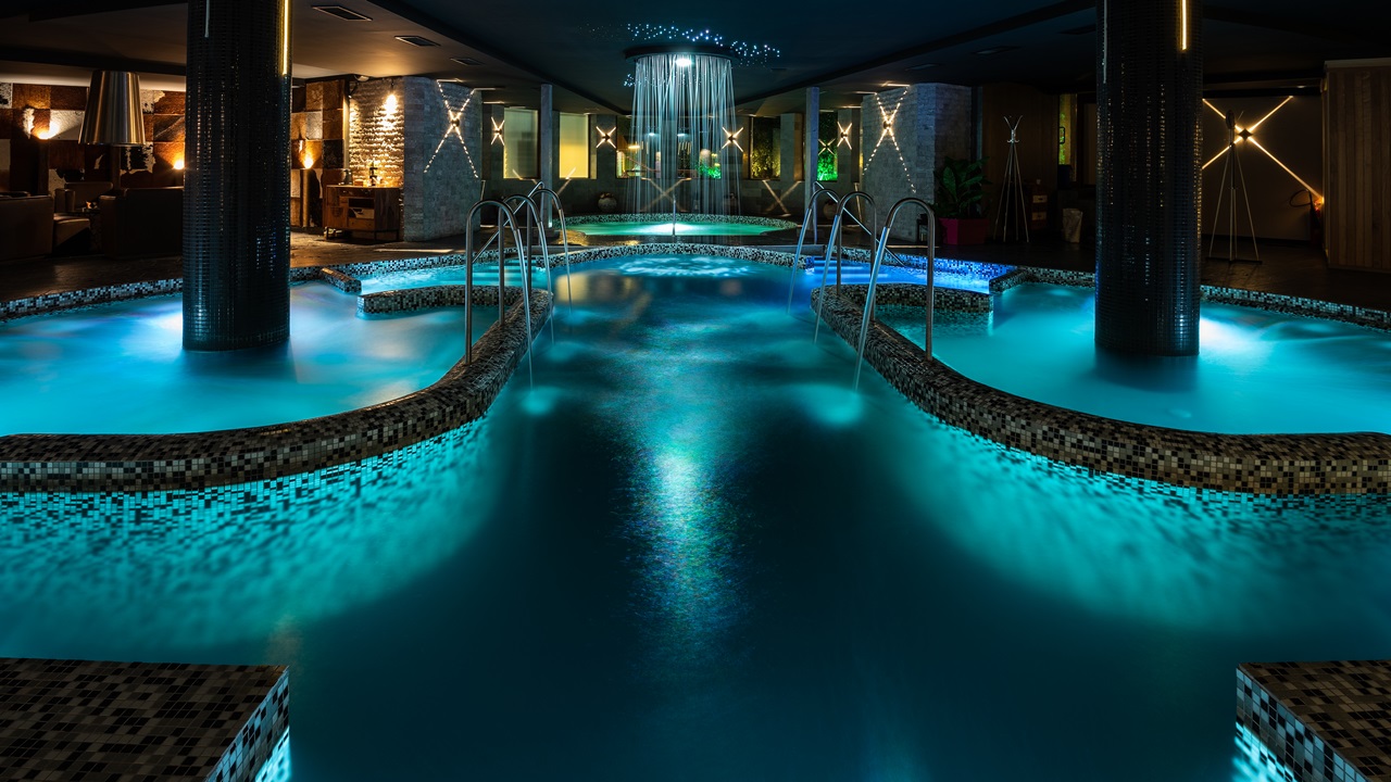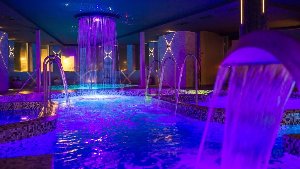 - Вътрешен топъл акватоничен басейн с хидромасажни дюзи
