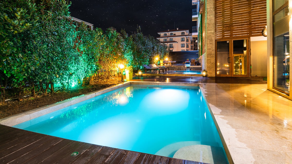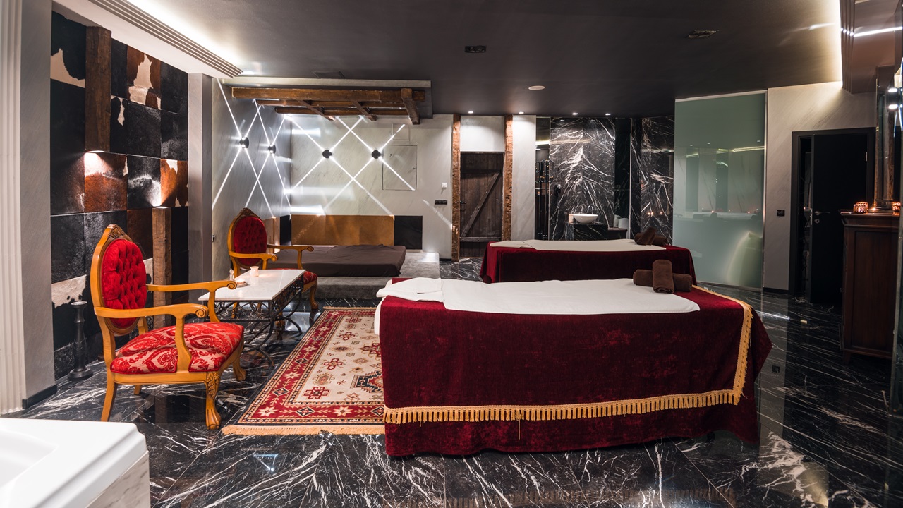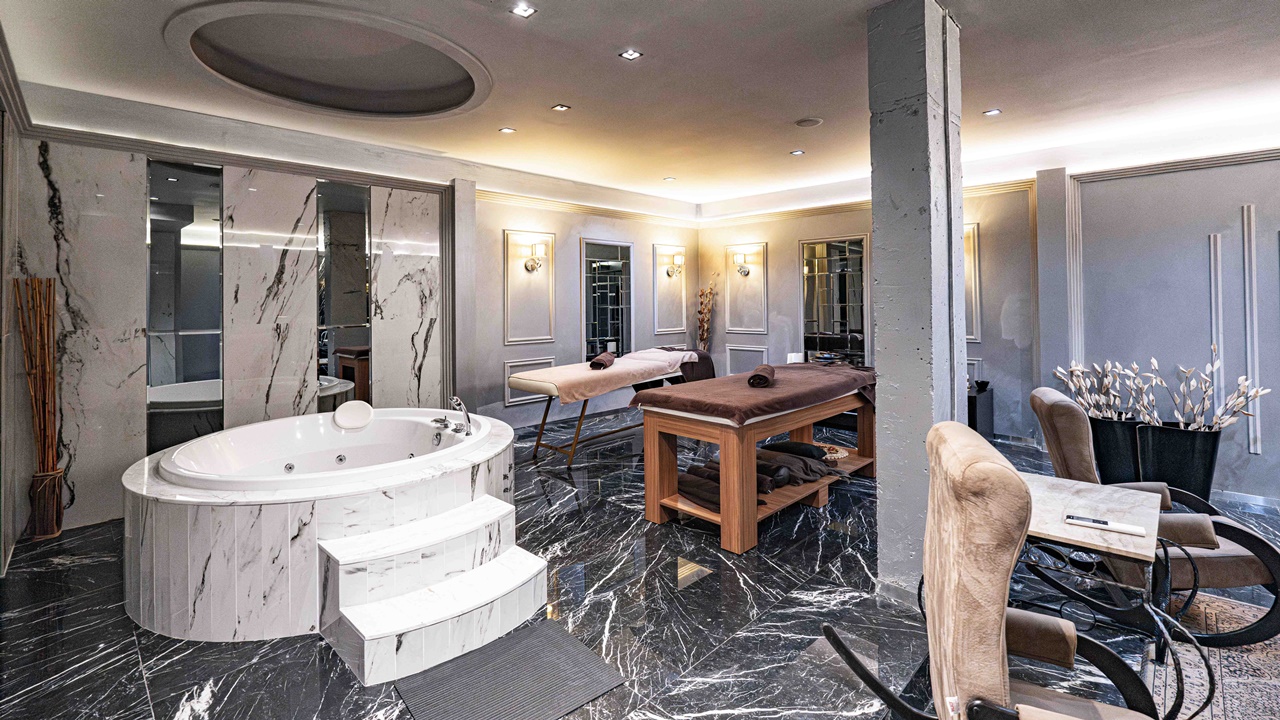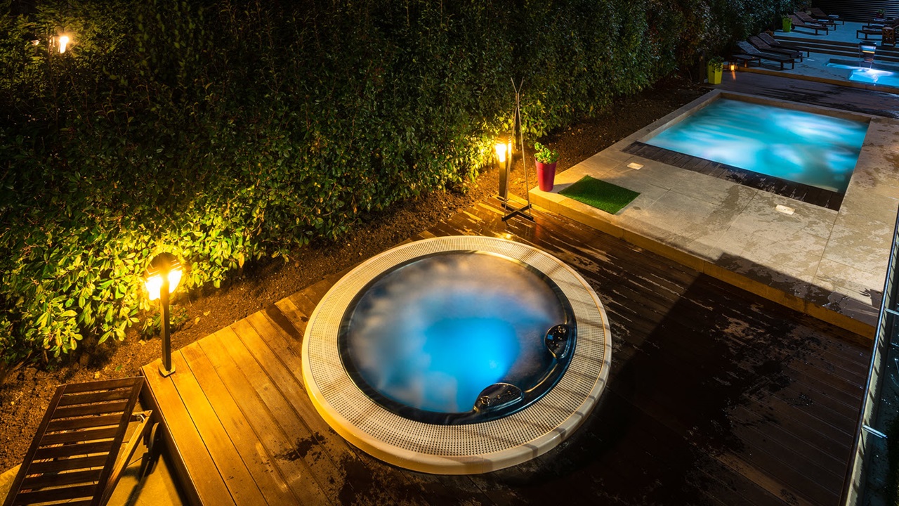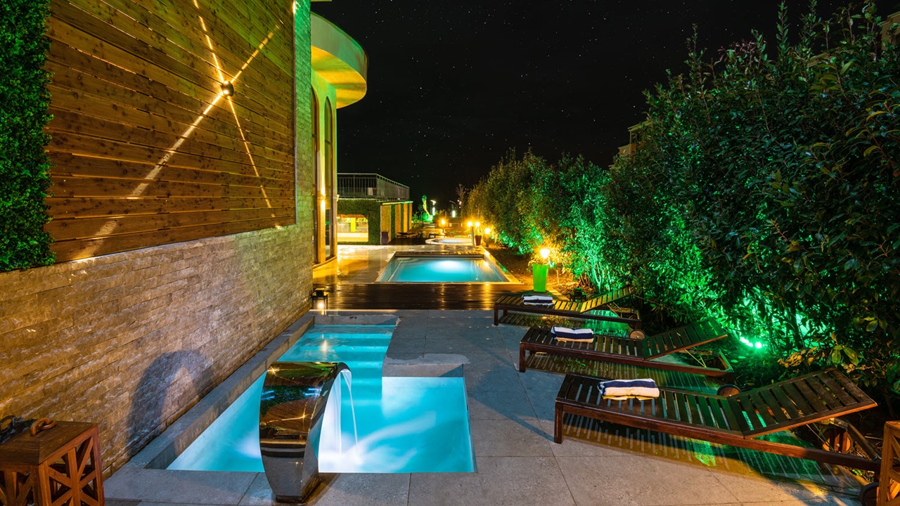 - Вътрешен топъл акватоничен басейн с хидромасажни дюзи