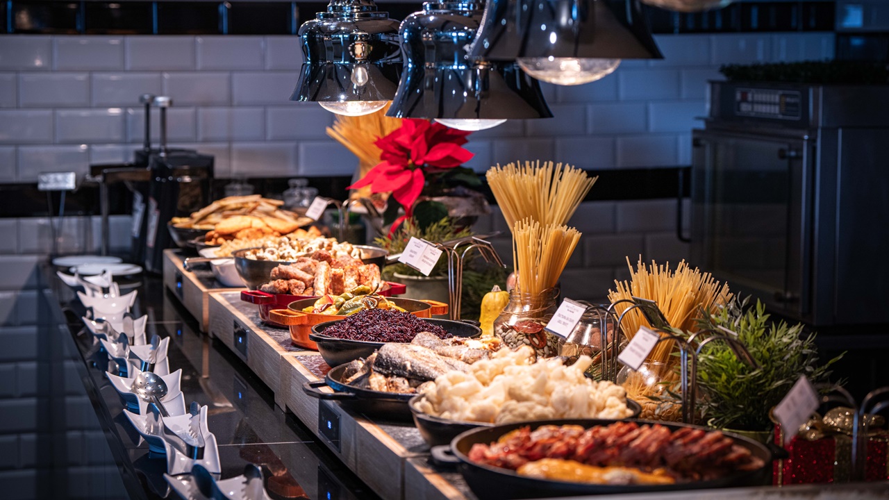 - 08:00-10:00 am - Закуска AlldayRestaurant – разнообразие от топли и студени ястия, солени и сладки закуски, английска закуска, яйчни специалитети, разнообразни млечни продукти, студени колбаси и сирена, селекция от хлебни изделия, шоу кук с разнообразни топли палачинки, зърнени храни и варива, пресни сезонни и сушени плодове, селекция от плодови конфитюри, различни видове топинги, свежи зеленчуци, ядки, диетична секция, бебешки млека и пюрета