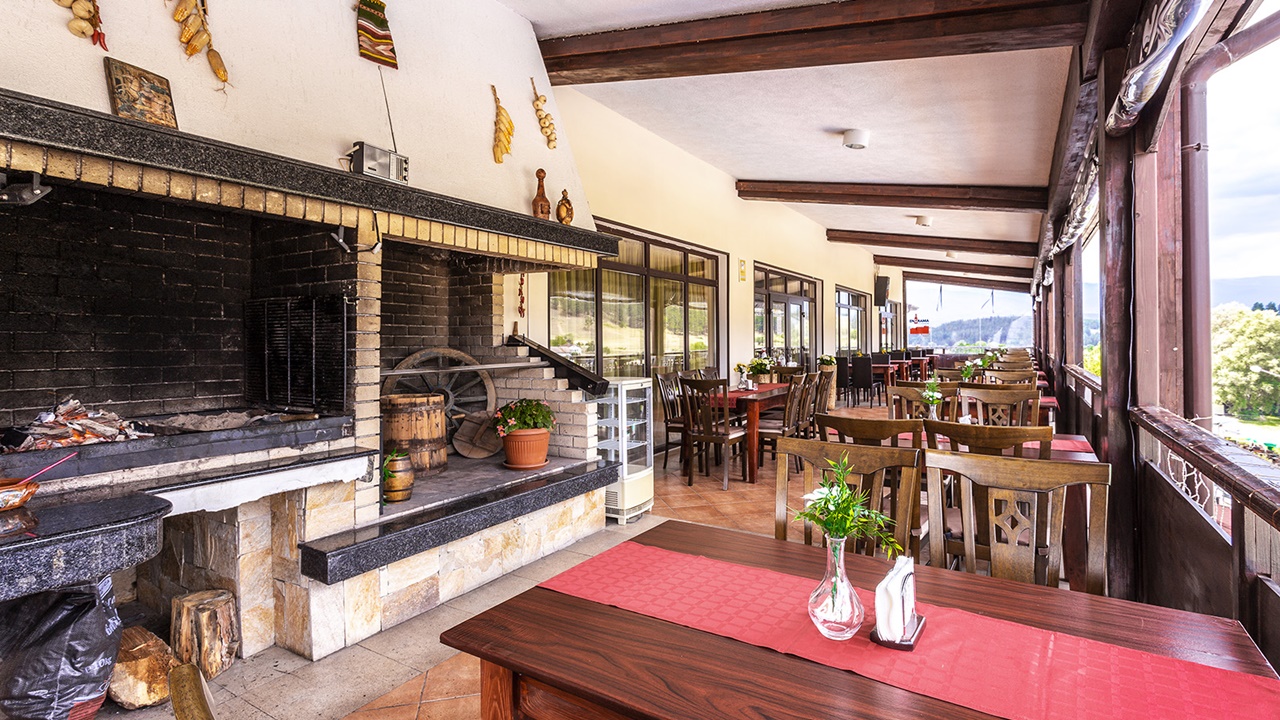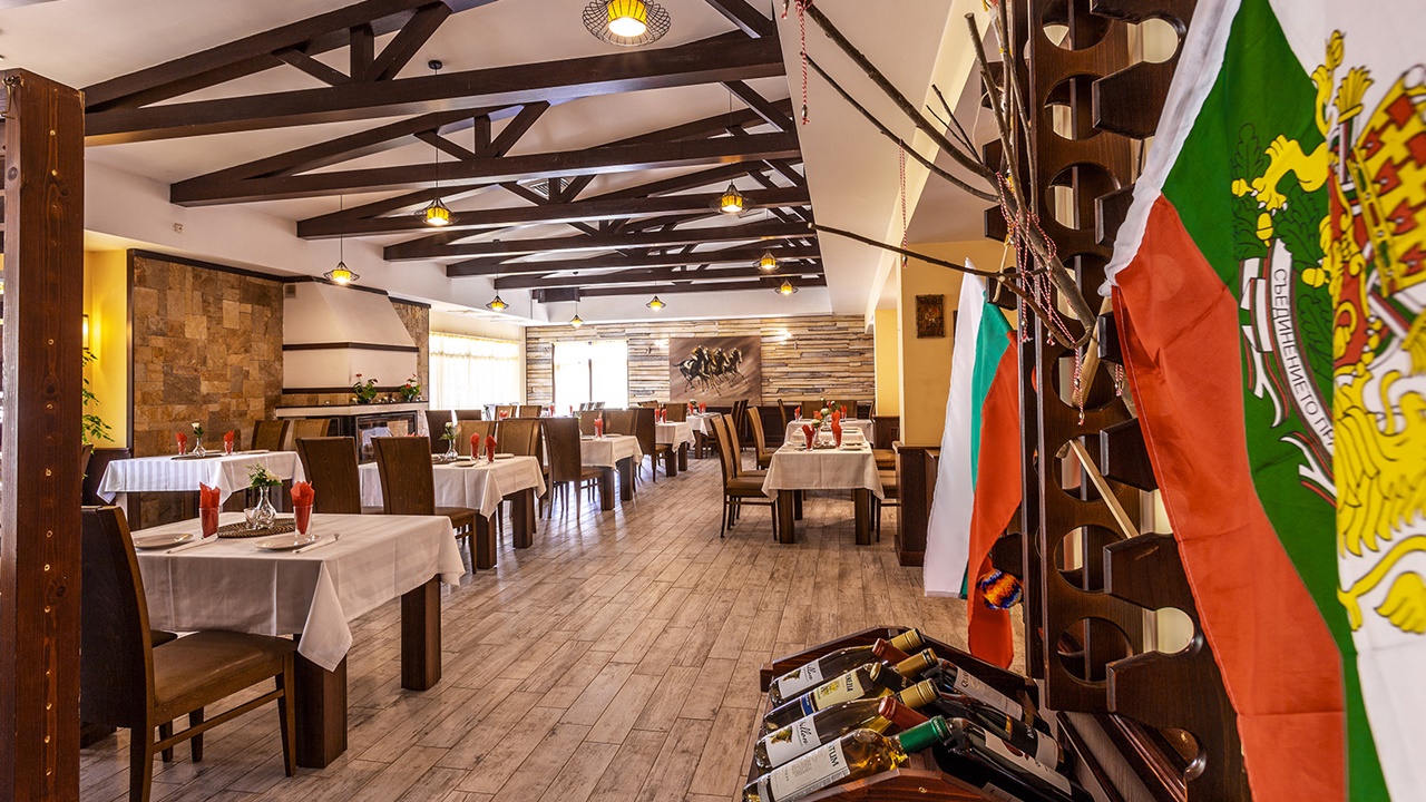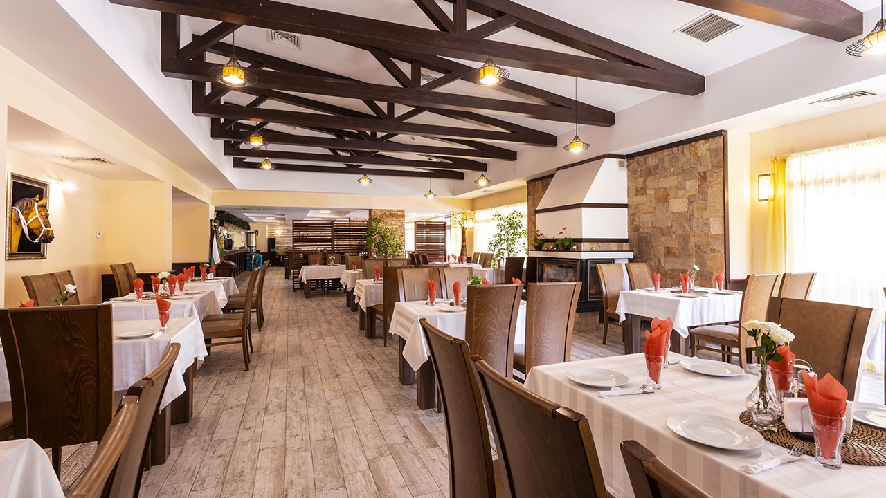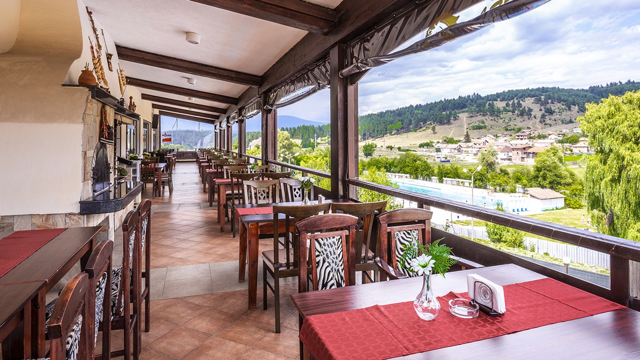 Ресторантът е със 150 места и разполага с барбекю, чеверме и пещ. В менюто присъстват вкусни ястия от европейската и българска кулинарна класика, подбрани местни специалитети и богат избор от вина. Просторната тераса открива прекрасна гледка към планината. Лоби барът е с 40 места и предлага питие за всеки вкус. Басейнът с минерална вода се ползва целогодишно, а през топлите дни откритият бар подарява още една доза емоция.