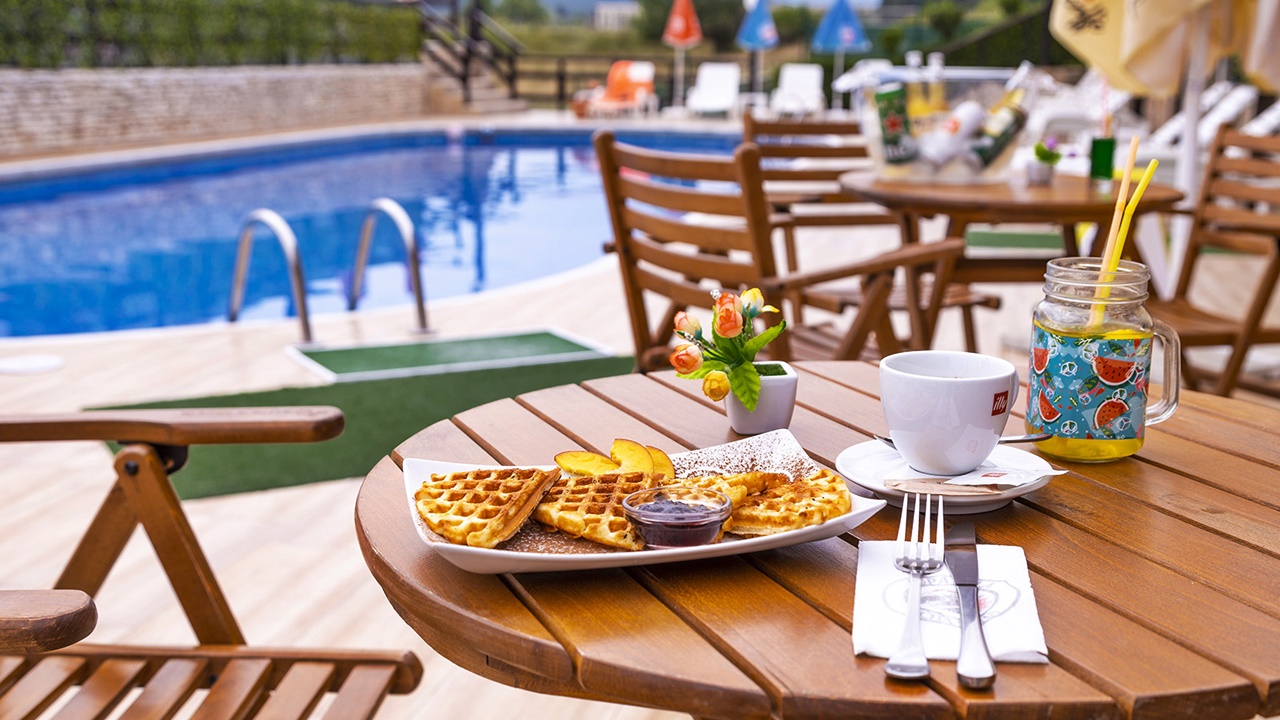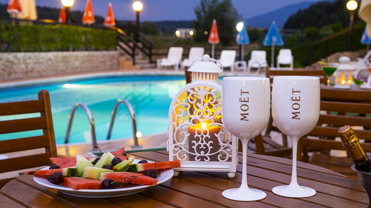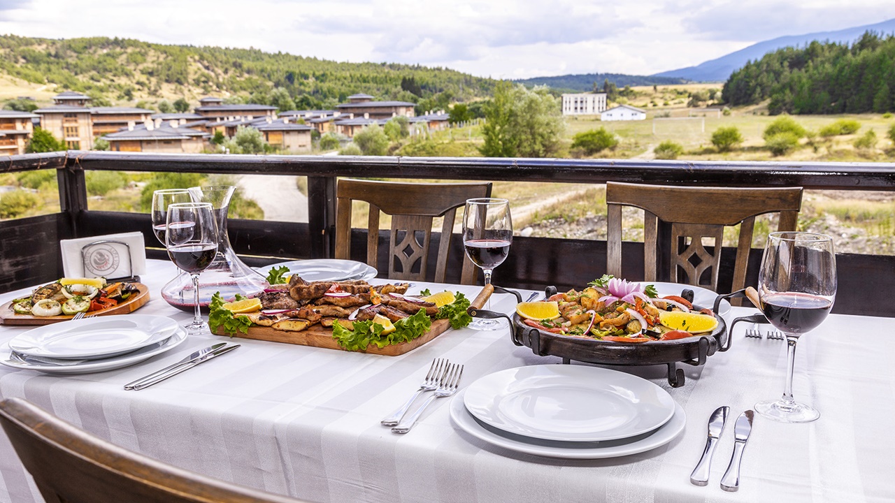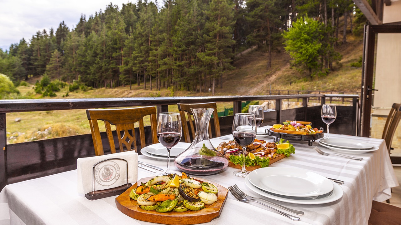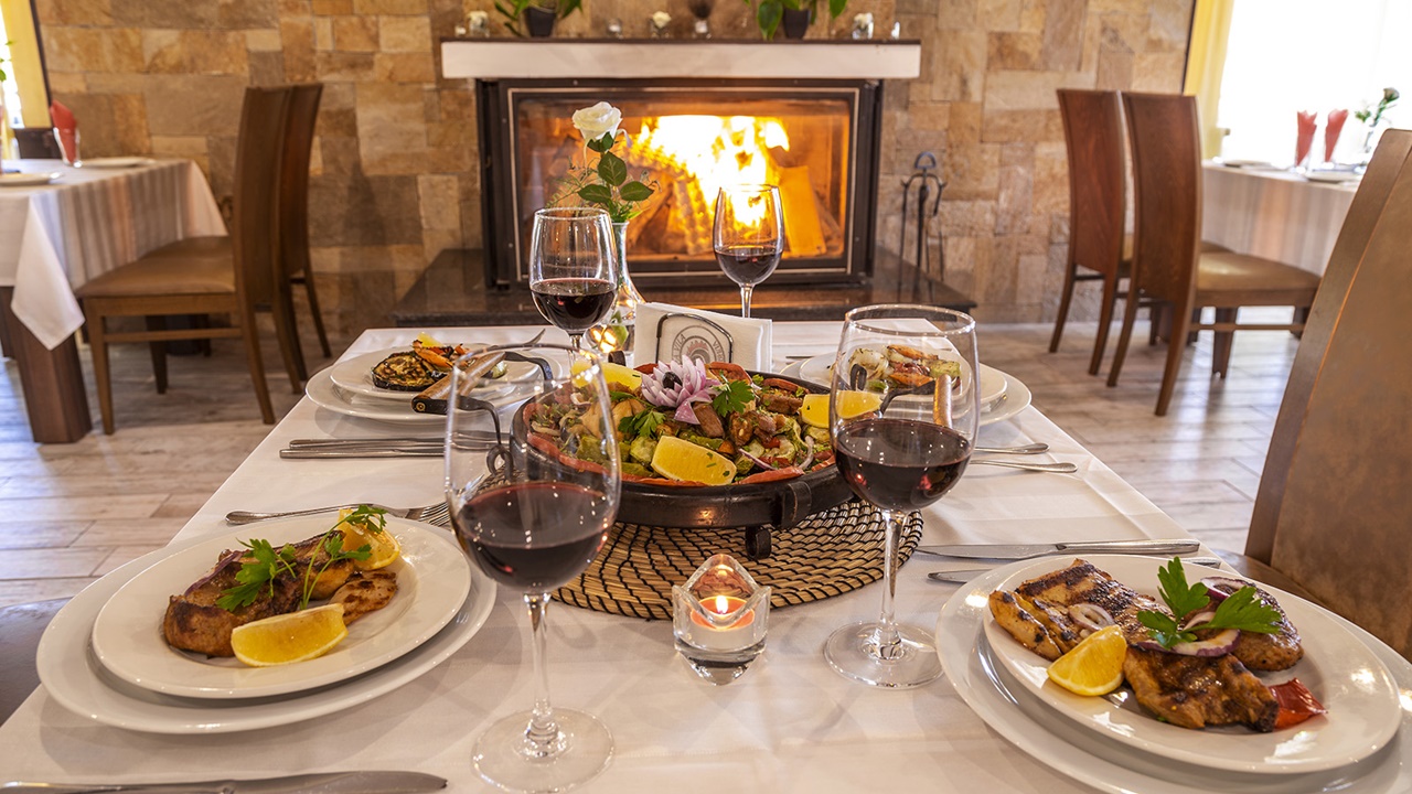 Ресторантът е със 150 места и разполага с барбекю, чеверме и пещ. В менюто присъстват вкусни ястия от европейската и българска кулинарна класика, подбрани местни специалитети и богат избор от вина. Просторната тераса открива прекрасна гледка към планината. Лоби барът е с 40 места и предлага питие за всеки вкус. Басейнът с минерална вода се ползва целогодишно, а през топлите дни откритият бар подарява още една доза емоция.