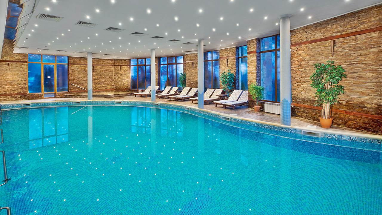 Уелнес зона с вътрешен, външен и детски басейн, закрито джакузи, фитнес и фреш-бар