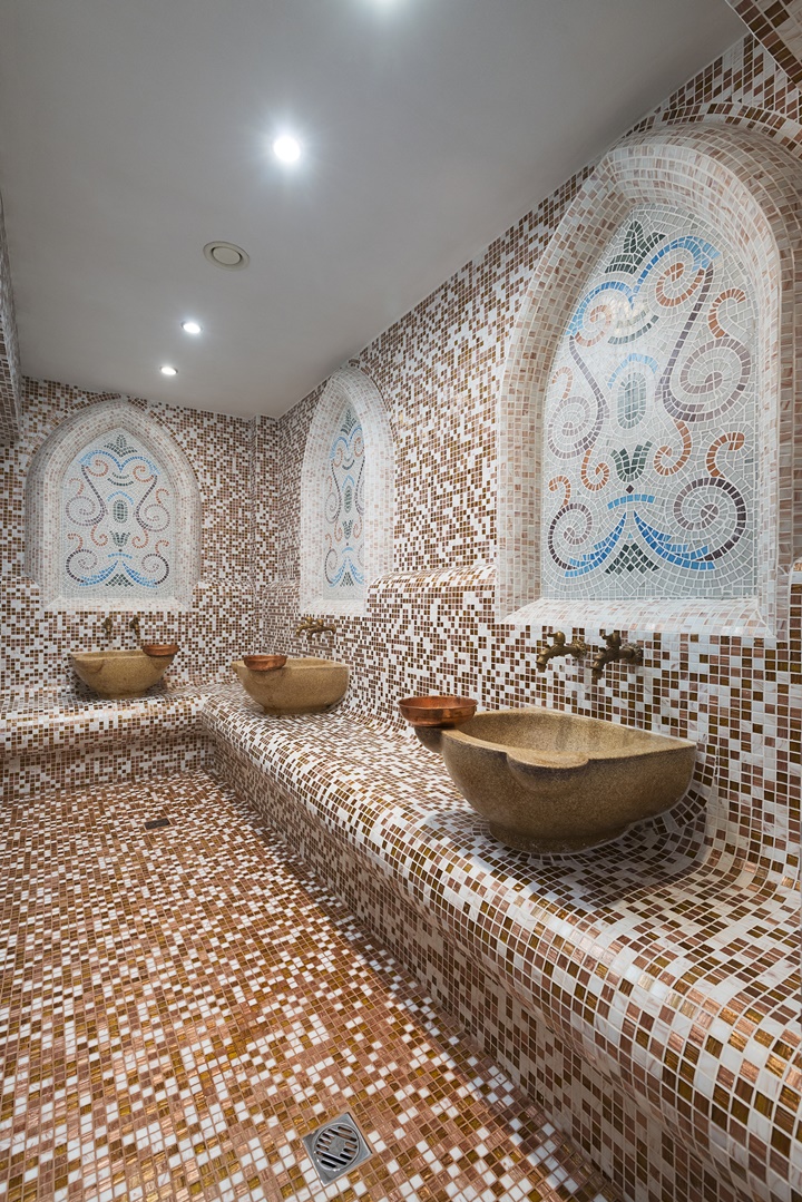 СПА зона с кабинети за козметични процедури и масажи, кабинет Аюрведа, 4 кабинета с вани, сауна и парна баня, турска баня, зала за релакс и солариум