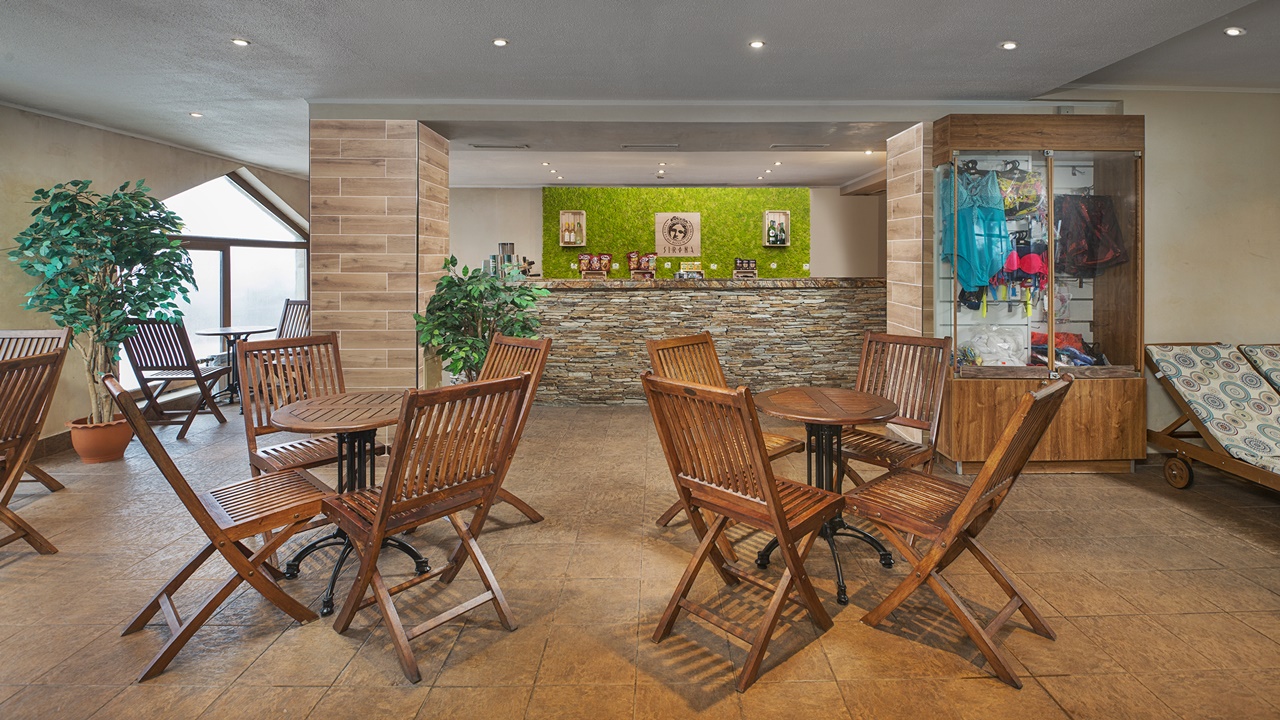 Развлекателна зона с основен ресторант, ресторант-лятна градина, механа , кафе-бар „Панорама” с изглед към Велинград, лоби-бар, кафе-лятна градина, игрална и компютърна зала и детски кът