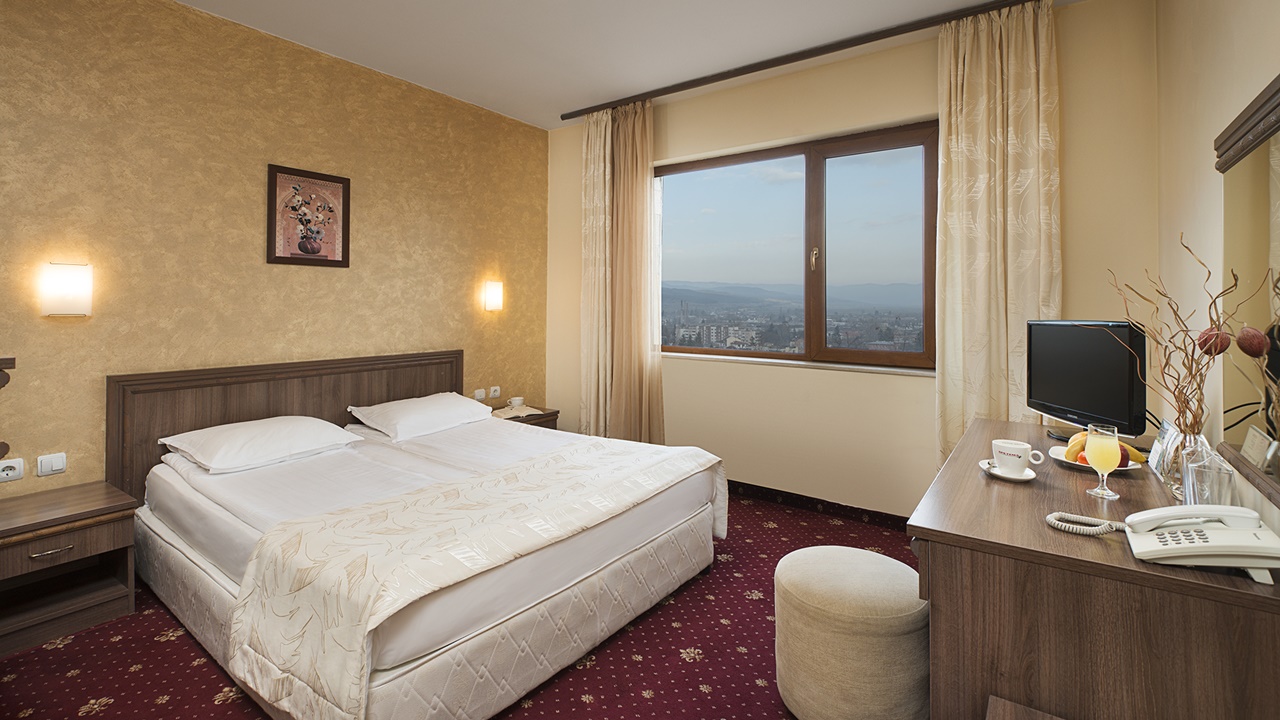 - двойна стая - двойните стаи са с площ около 25 кв.м. и разполагат с 2 единични легла (които могат да се събират като спалня) или двойно легло, интернет, телевизор с плосък екран и сателитна телевизия, мини бар, уреди за кафе / чай, работно бюро, телефон в стаята, телефон в банята, душ кабина в банята, сешоар в банята, няма балкон. Избягайте от ежедневието и шума на големия град! Потопете се в уюта на бутикова двойна стая с изглед към гората или панорамна гледка към града.
