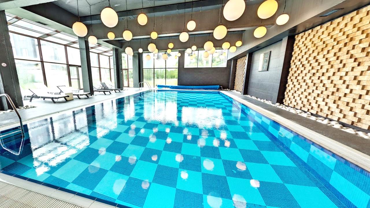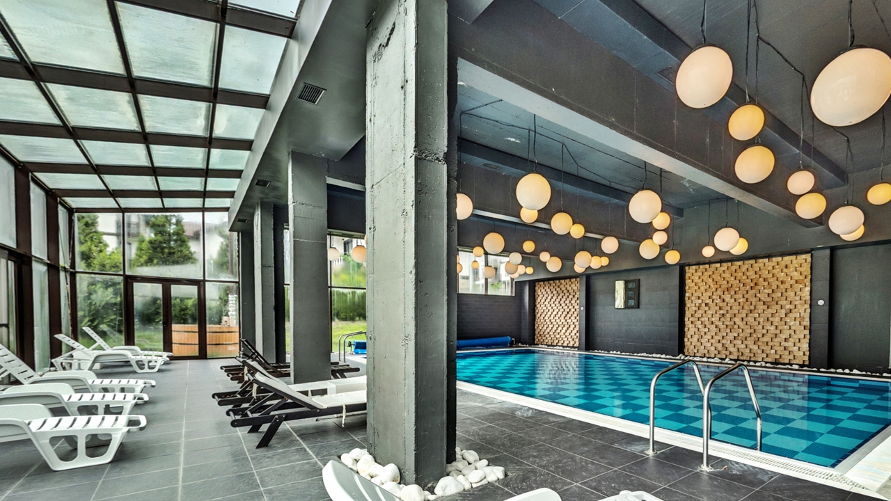 • Вътрешен отопляем басейн (30 градуса) с излаз към градината