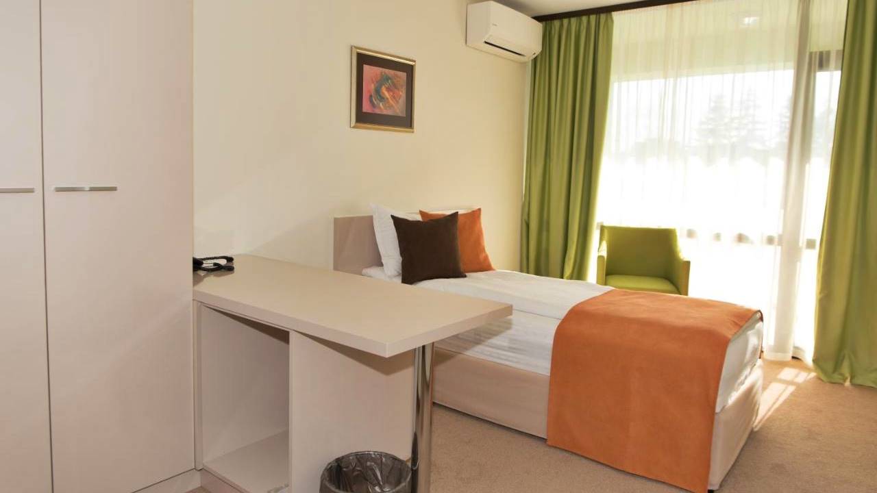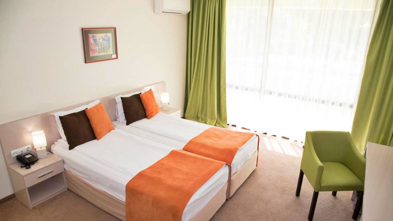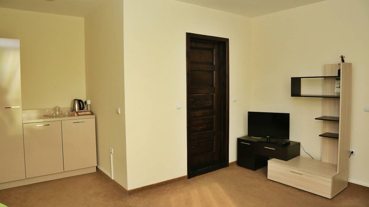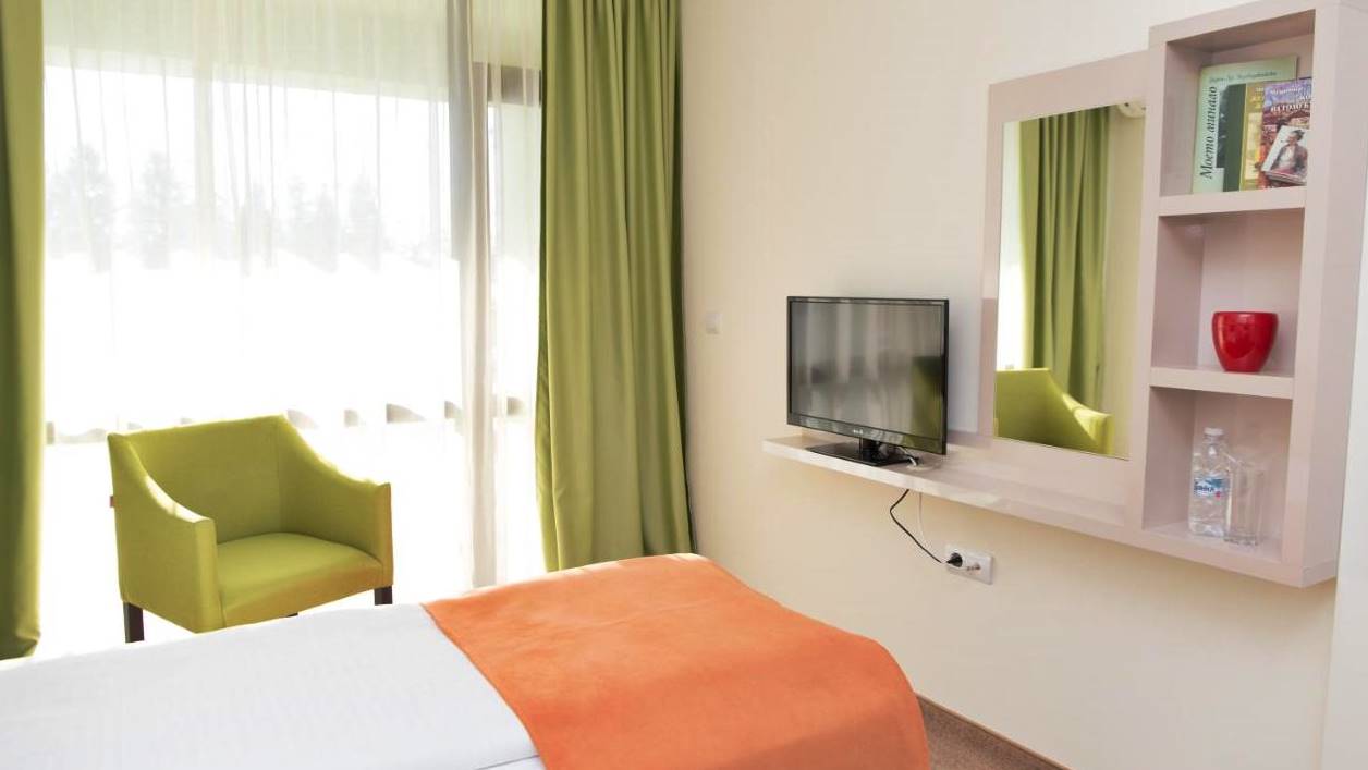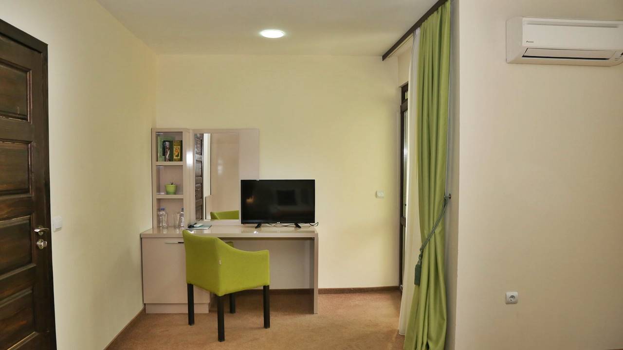 • всички помещения са светли и тихи, обзаведени в топли цветове и разполагат с: топла вода, отопление с климатик, кабелна телевизия, LCD телевизор, телефон, зареждане с халат и чехли, сешоар, LED огледало, тераса, противопожарна система, безжичен интернет и малка библиотека с книги на Чудомир
