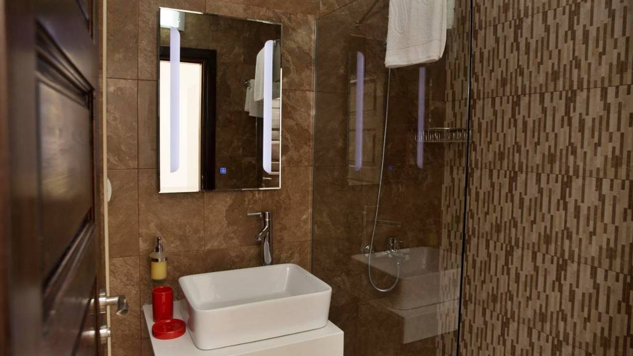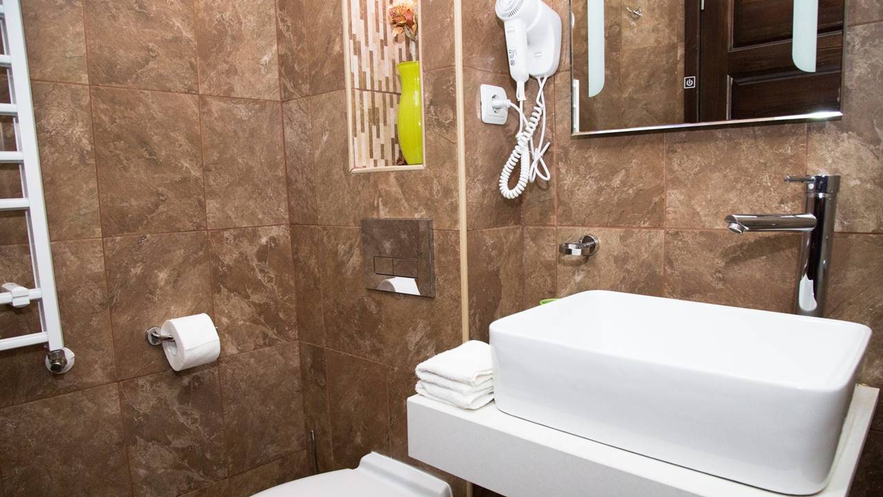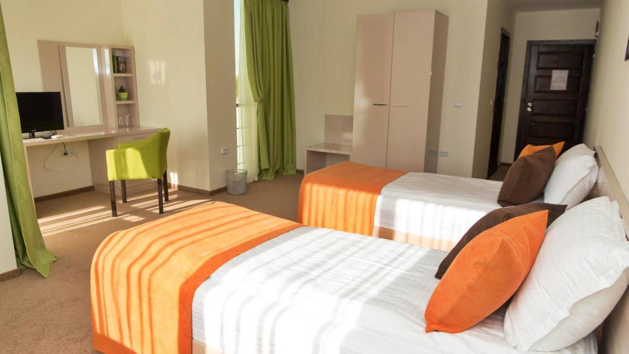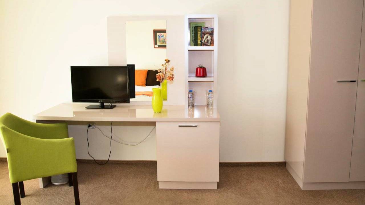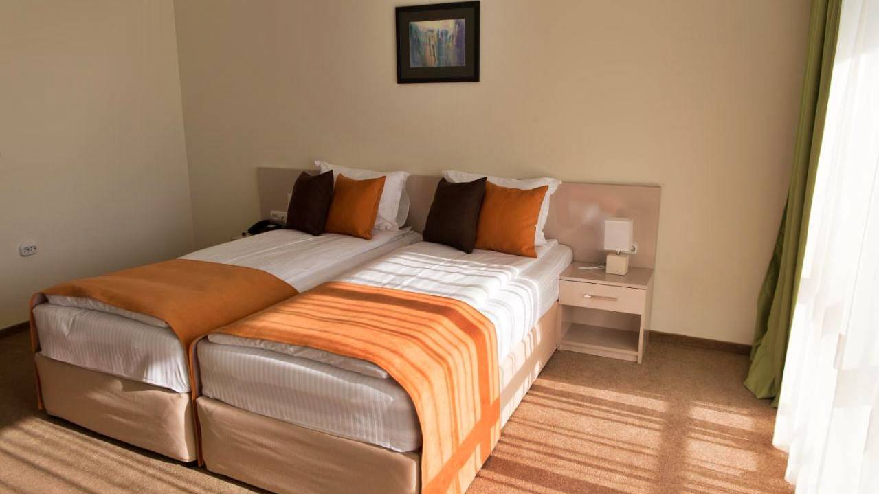 • всички помещения са светли и тихи, обзаведени в топли цветове и разполагат с: топла вода, отопление с климатик, кабелна телевизия, LCD телевизор, телефон, зареждане с халат и чехли, сешоар, LED огледало, тераса, противопожарна система, безжичен интернет и малка библиотека с книги на Чудомир