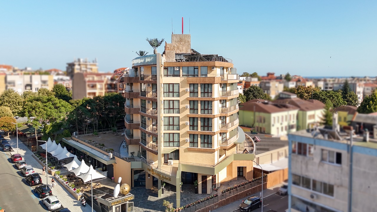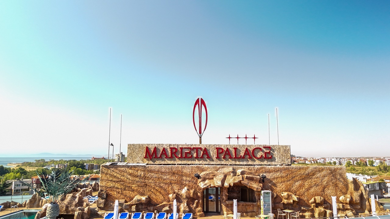 Хотел Мариета Палас, Несебър e разположен в близост до най-оживените търговски улици на Несебър и само на 600м от живописния Черноморски плаж. Отличава се с модерна архитектура и стил, които се вписват по своеобразен начин в атмосферата на Несебър. Елегантност, дружелюбно отношение и комфорт ще ви направят впечатление още при влизане в хотела.