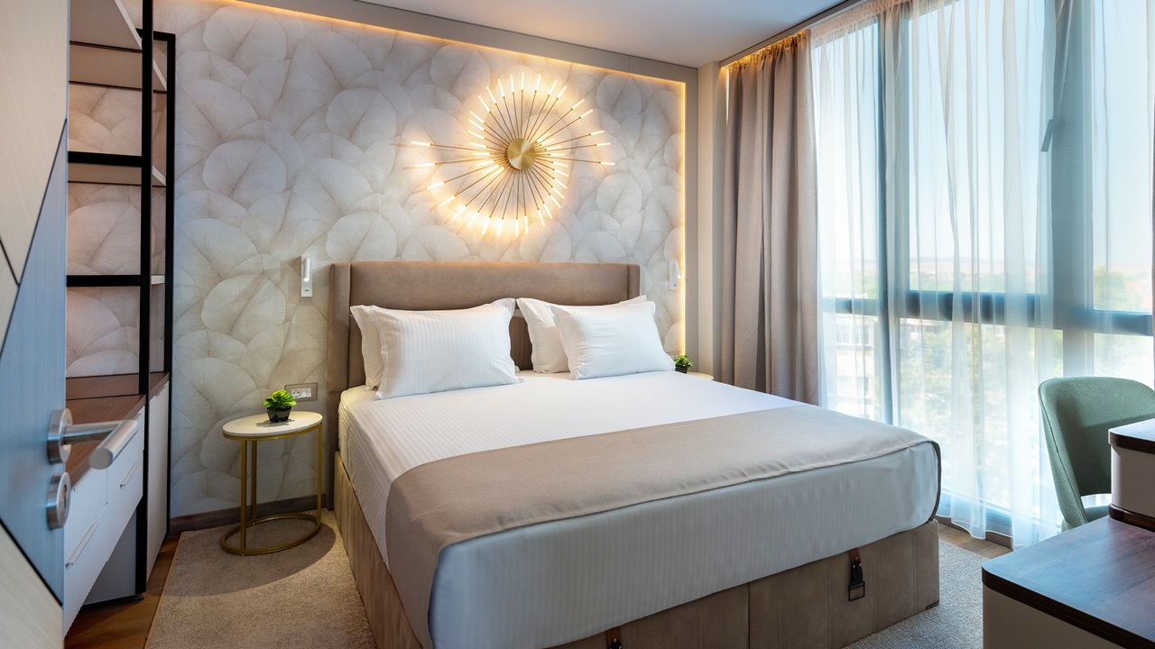 - Двойна стандартна стая - Приблизителна площ между 22 - 26 м2. Всички двойни стаи разполагат с едно двойно легло или две единични легла (позиционирани едно до друго) и едно допълнително легло - разтегателен фотьойл (90см х 190см). Обзаведени са с климатик, плоскоекранен телевизор, минибар, сейф, кафе машина, WiFi, баня с душ кабина, сешоар и тоалетни принадлежности, тераса