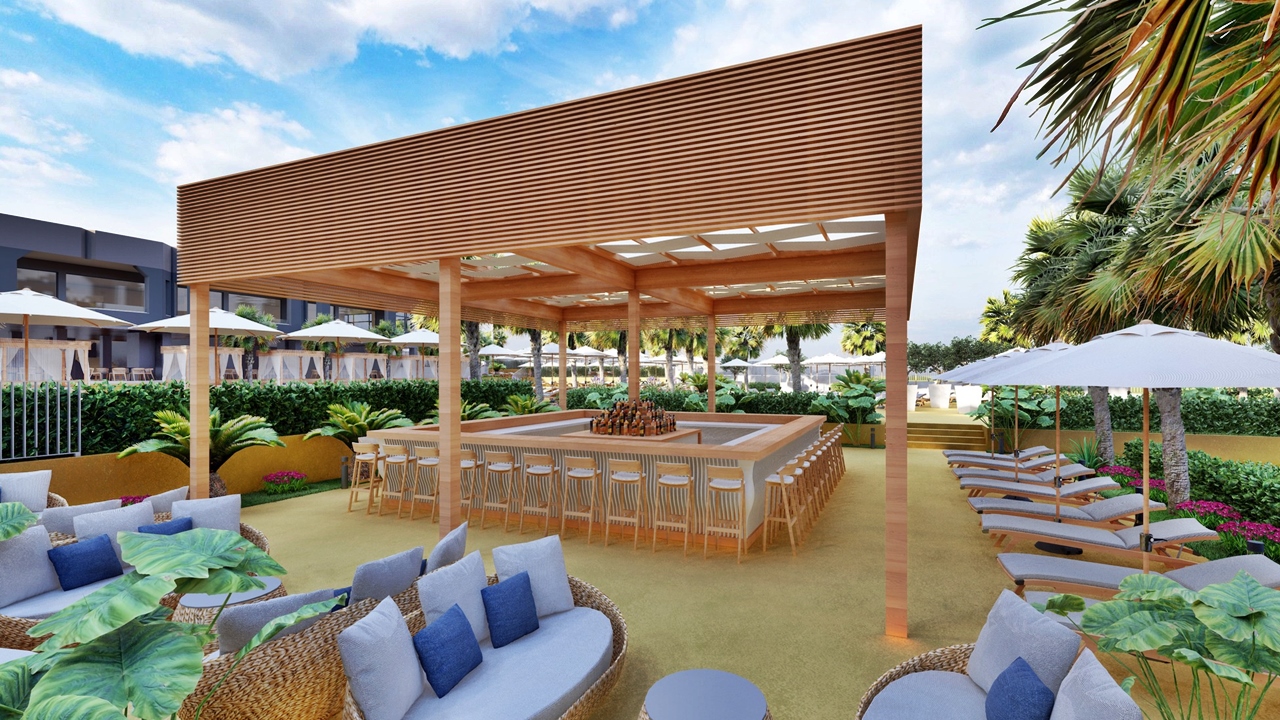 Чадъри и шезлонги край басейните, Лоби бар и Бар басейн