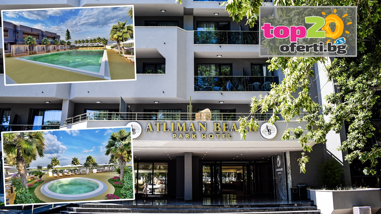 В непосредствена близост до най-оживената търговска улица на Китен, Парк Хотел Атлиман Бийч**** ви посреща с изцяло реновиран и модерен интериор, създаден за пълен комфорт и усещане за стилен лукс. Разположен сред 19 000 кв.м. зелена паркова площ, хотелът предлага идеален баланс между спокойствие, простор и морска енергия. На разположение на гостите са два външни басейна – за възрастни и деца, както и разнообразие от удобства за едно безгрижно All Inclusive изживяване.
