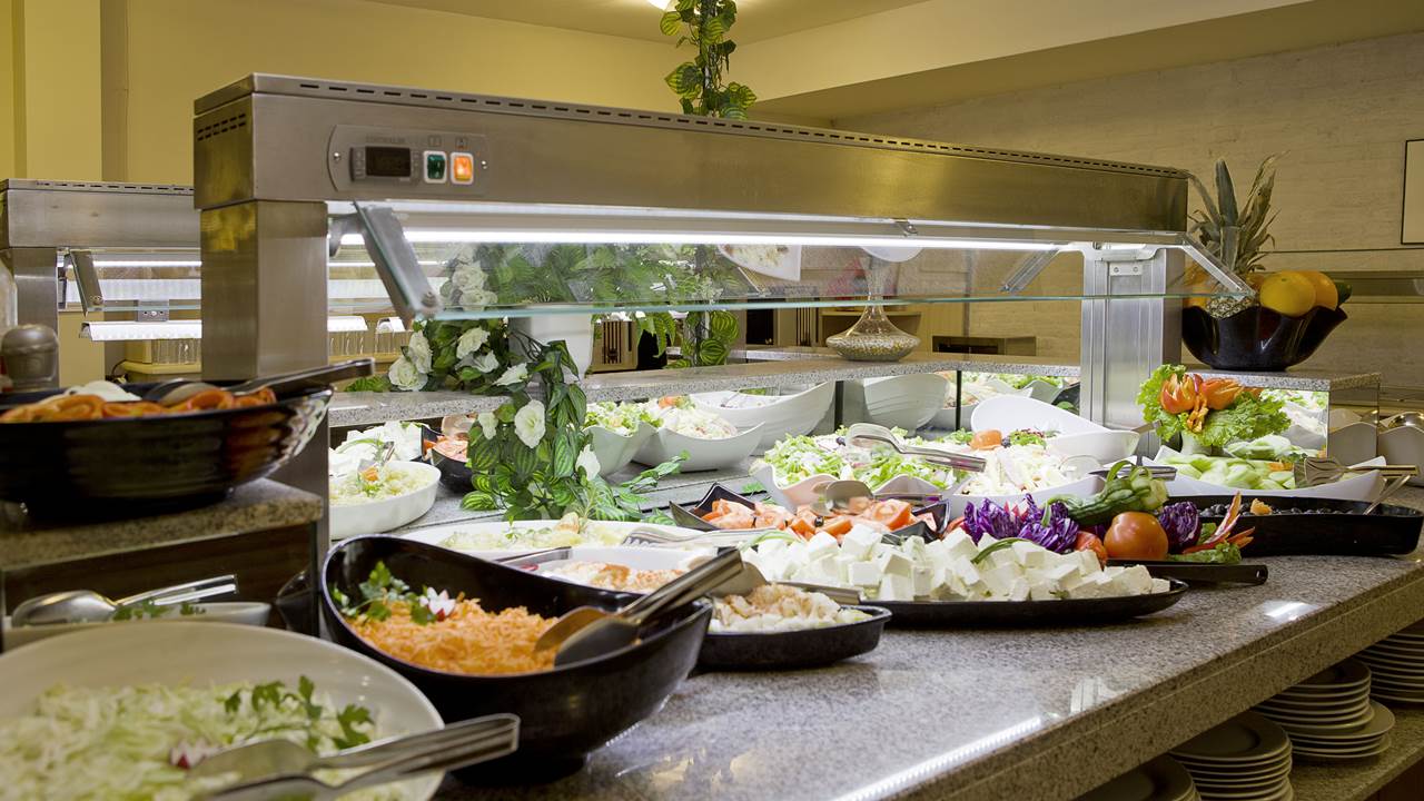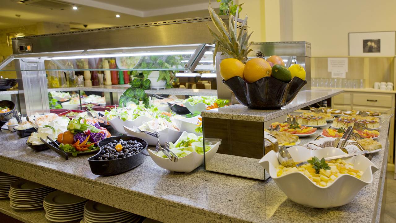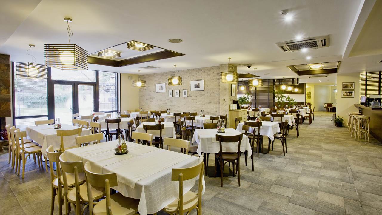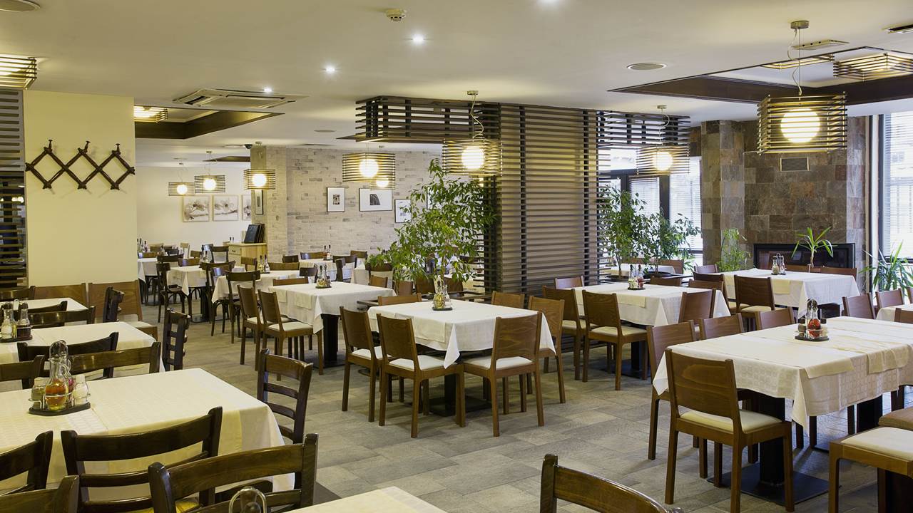 - Закуска (07:30 - 10:00ч) - прясно изпечен хляб, масло, яйчени специалитети, английска закуска, бекон, мекици, палачинки, пържени филийки, домашна баница, макаронени изделия, студени колбаси и сирена, солени и сладки закуски, конфитюри, компоти, медена пита, зърнени закуски и корнфлейкс, сушени плодове, пресни сезонни плодове и зеленчуци, кисело мляко, плодово мляко, нискомаслени храни. Напитки: Топли напитки (чай, кафе, мляко), минерална вода и различни сокове и безалкохолни напитки от пост микс апарати