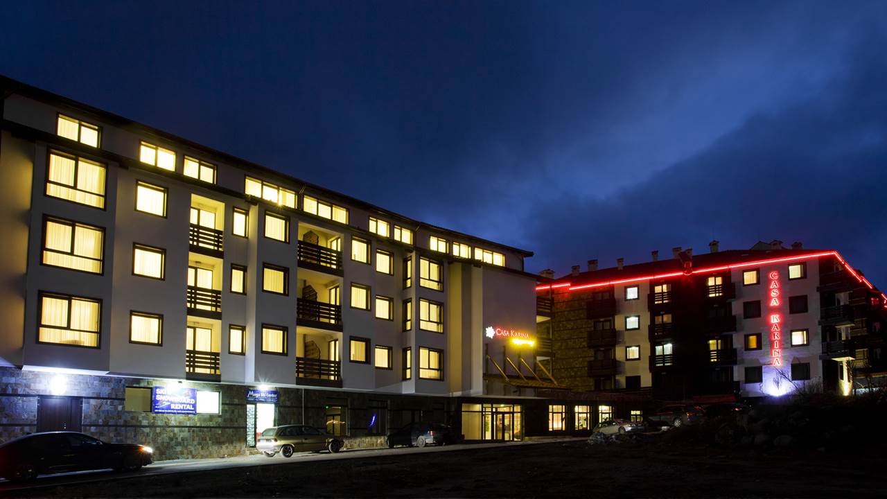 Хотел Каза Карина- Банско се намира в един от най-красивите и модерни ски курорти - Банско. В непосредствена близост е до началната станция на кабинковия лифт (300 метра) и 20 минути разходка до центъра на града. Хотелът разполага с две сгради обединени с топла връзка където е разположена рецепцията. На своите гости хотела предлага луксозен ресторант, басейн, СПА център, забавен детски кът.