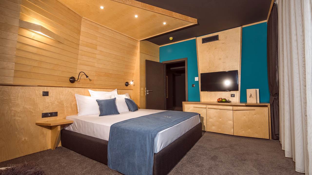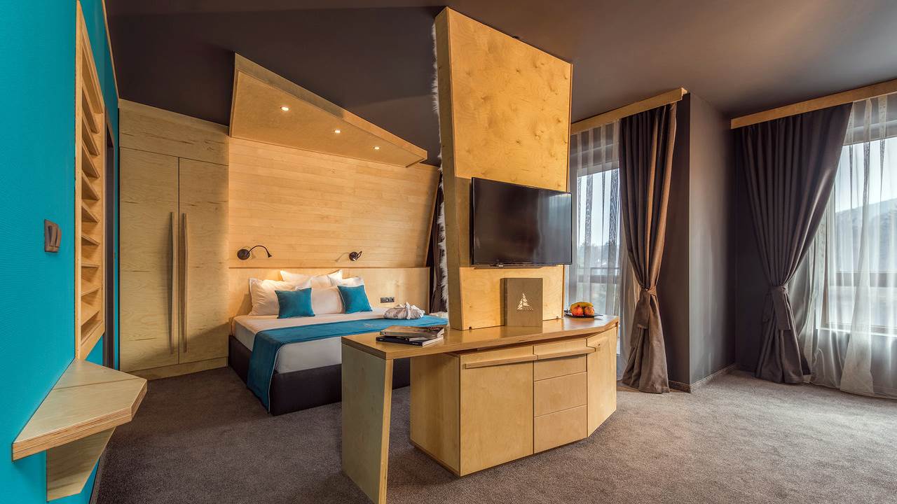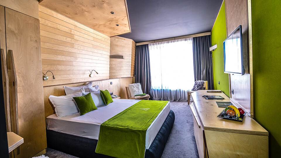 • двойна стая делукс премиум - стаята е с квадратура 45-47 кв. м., панорамна гледка към басейн/планина, спалня или две отделни легла, разтегателен двоен диван, душ кабина и балкон;