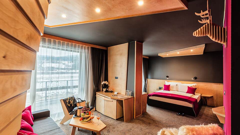 • двойна стая делукс - стаята е с квадратура 38-40 кв. м., изглед към планината, спалня или две отделни легла, разтегателен двоен диван, душ кабина и балкон;